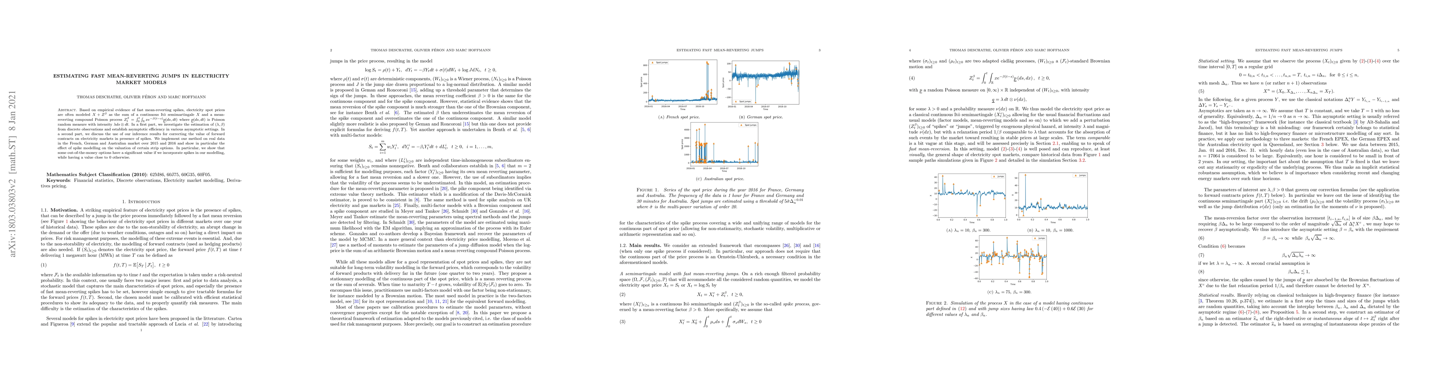 Based on empirical evidence of fast mean-reverting spikes, we model electricity price processes $X+Z^\beta$ as the sum of a continuous It\^o semimartingale $X$ and a a mean-reverting compound Poisson process $Z_t^\beta = \int_0^t \int_{\mathbb{R}} xe^{-\beta(t-s)}\underline{p}(ds,dt)$ where $\underline{p}(ds,dt)$ is Poisson random measure with intensity $\lambda ds\otimes dt$. In a first part, we investigate the estimation of $(\lambda,\beta)$ from discrete observations and establish asymptotic efficiency in various asymptotic settings. In a second part, we discuss the use of our inference results for correcting the value of forward contracts on electricity markets in presence of spikes. We implement our method on real data in the French, Greman and Australian market over 2015 and 2016 and show in particular the effect of spike modelling on the valuation of certain strip options. In particular, we show that some out-of-the-money options have a significant value if we incorporate spikes in our modelling, while having a value close to $0$ otherwise.