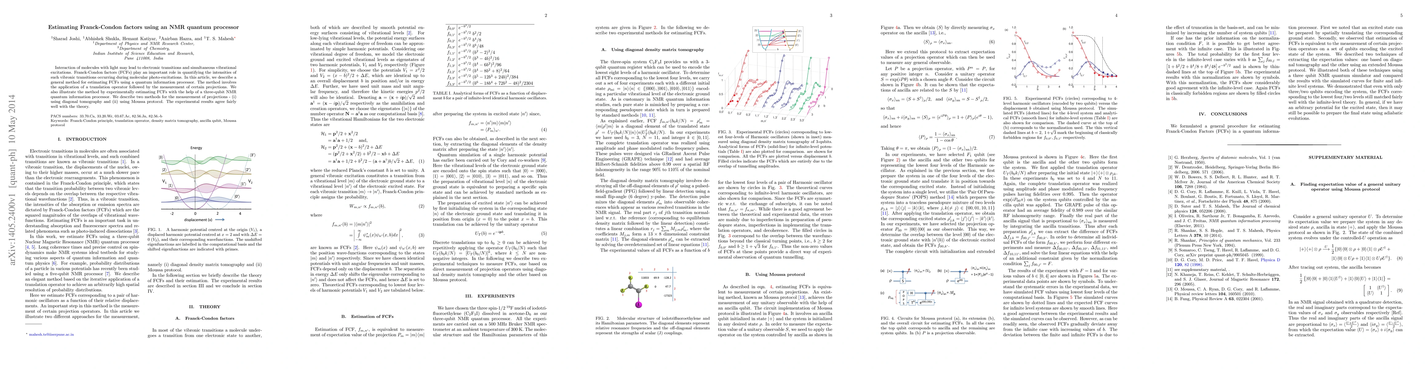 This paper presents a novel method for estimating Franck-Condon factors using a quantum information processor, specifically an NMR quantum processor, involving translation operators and projection measurements. The method is demonstrated experimentally with a three-qubit NMR system, showing good agreement with theoretical predictions.