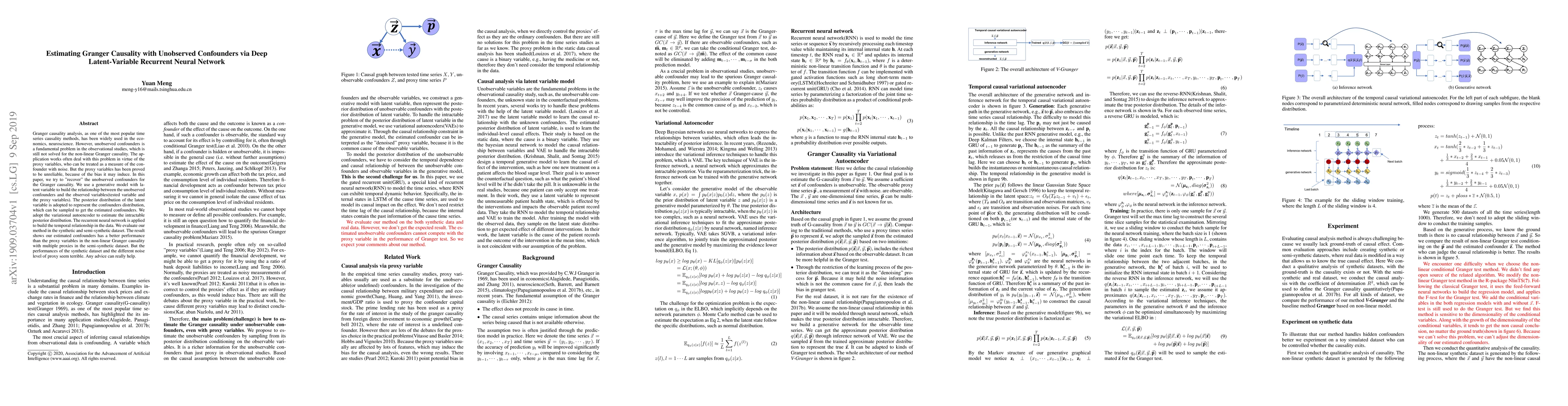 Granger causality analysis, as one of the most popular time series causality methods, has been widely used in the economics, neuroscience. However, unobserved confounders is a fundamental problem in the observational studies, which is still not solved for the non-linear Granger causality. The application works often deal with this problem in virtue of the proxy variables, who can be treated as a measure of the confounder with noise. But the proxy variables has been proved to be unreliable, because of the bias it may induce. In this paper, we try to "recover" the unobserved confounders for the Granger causality. We use a generative model with latent variable to build the relationship between the unobserved confounders and the observed variables(tested variable and the proxy variables). The posterior distribution of the latent variable is adopted to represent the confounders distribution, which can be sampled to get the estimated confounders. We adopt the variational autoencoder to estimate the intractable posterior distribution. The recurrent neural network is applied to build the temporal relationship in the data. We evaluate our method in the synthetic and semi-synthetic dataset. The result shows our estimated confounders has a better performance than the proxy variables in the non-linear Granger causality with multiple proxies in the semi-synthetic dataset. But the performances of the synthetic dataset and the different noise level of proxy seem terrible. Any advice can really help.