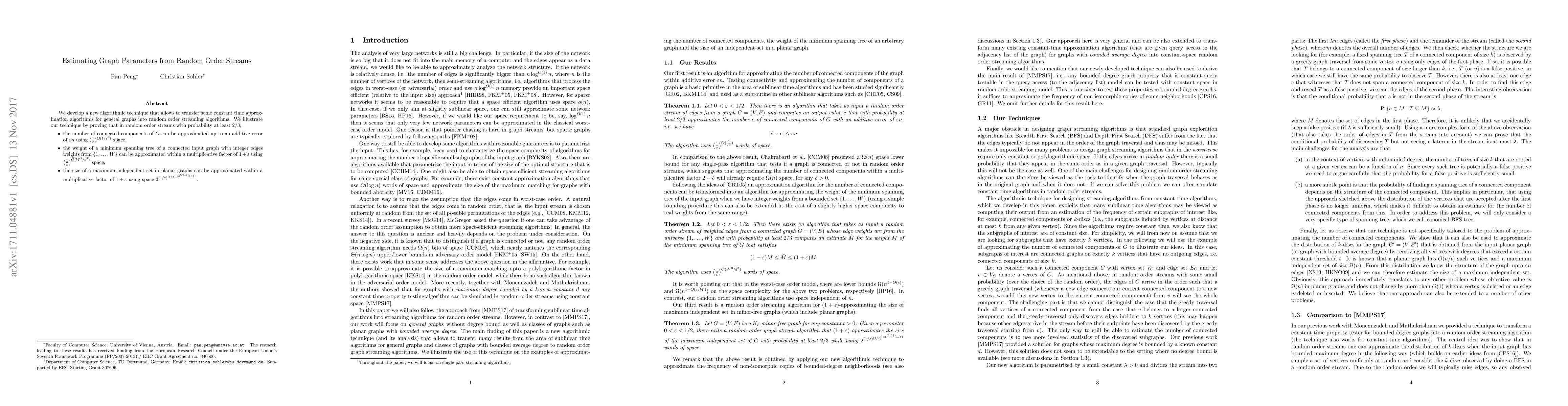 Researchers developed a technique to transfer constant-time algorithms for general graphs into random order streaming algorithms, achieving approximations for connected components, minimum spanning tree weights, and maximum independent sets with varying factors of accuracy.