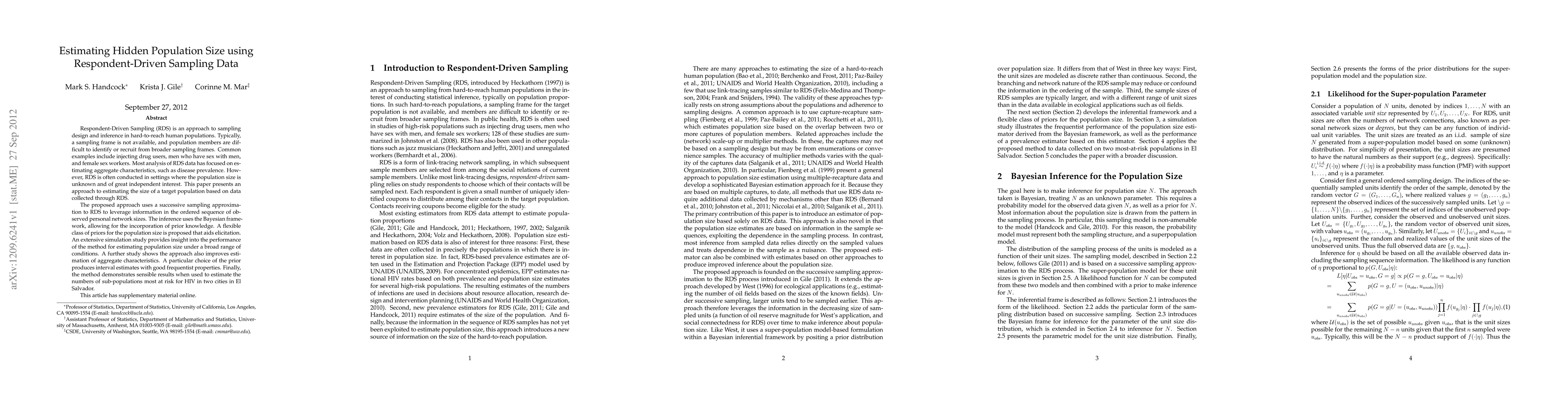This paper proposes a Bayesian approach for estimating the size of hidden populations using Respondent-Driven Sampling (RDS) data, leveraging the ordered sequence of observed personal network sizes and incorporating prior knowledge. The method shows good performance in simulations and real-world applications, improving estimates of both population size and aggregate characteristics.