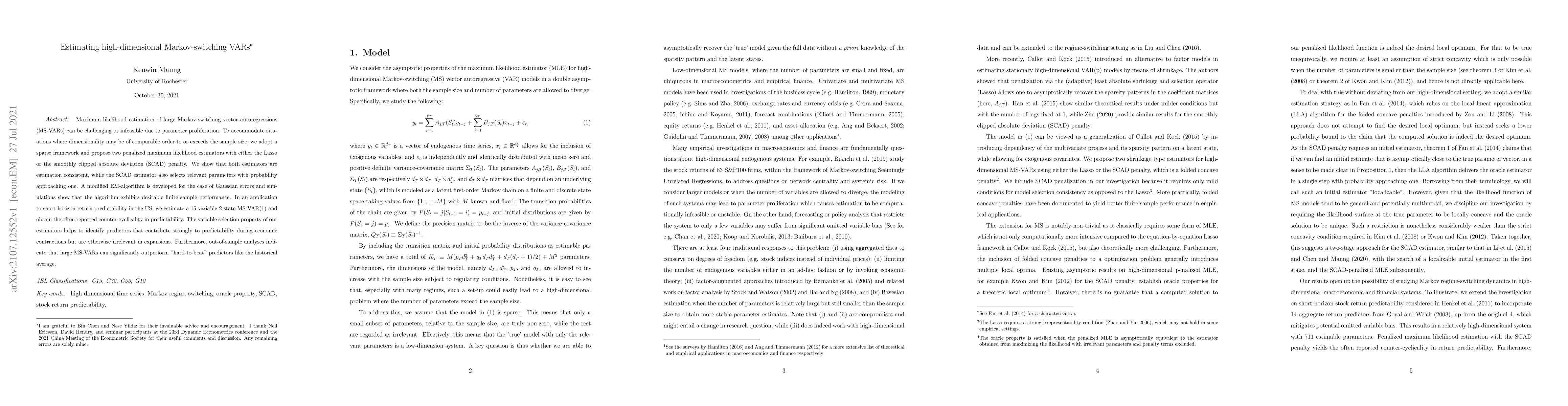Researchers propose new methods to estimate high-dimensional Markov-switching VARs, which can outperform traditional predictors like historical averages, and identify relevant predictors during economic contractions.