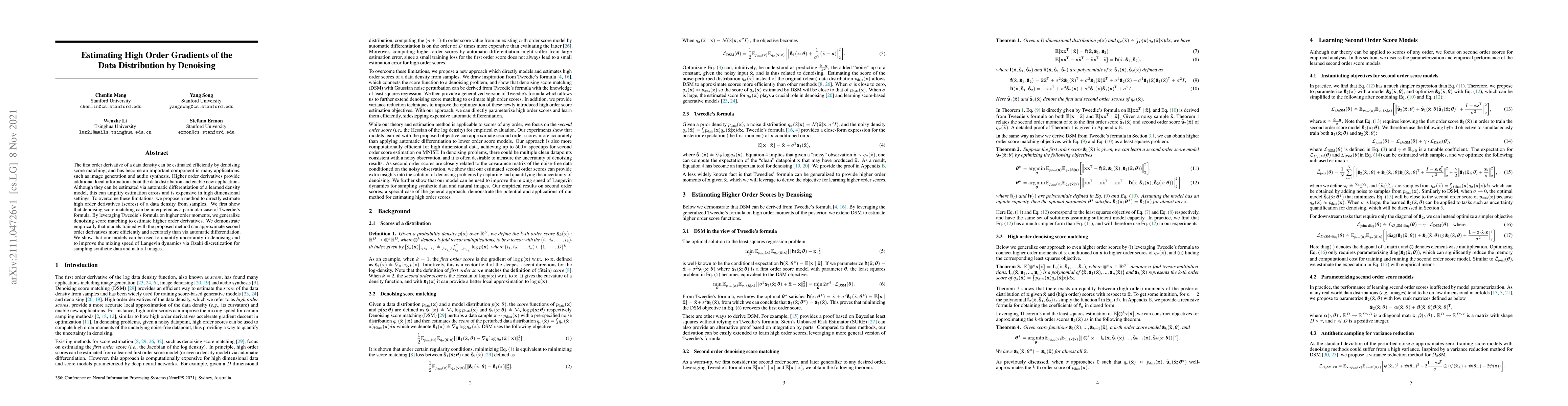 Researchers propose a method to estimate high order gradients of data distributions directly from samples, improving efficiency and accuracy over traditional methods like automatic differentiation. This approach enables new applications and quantification of uncertainty in sampling synthetic data and natural images.
