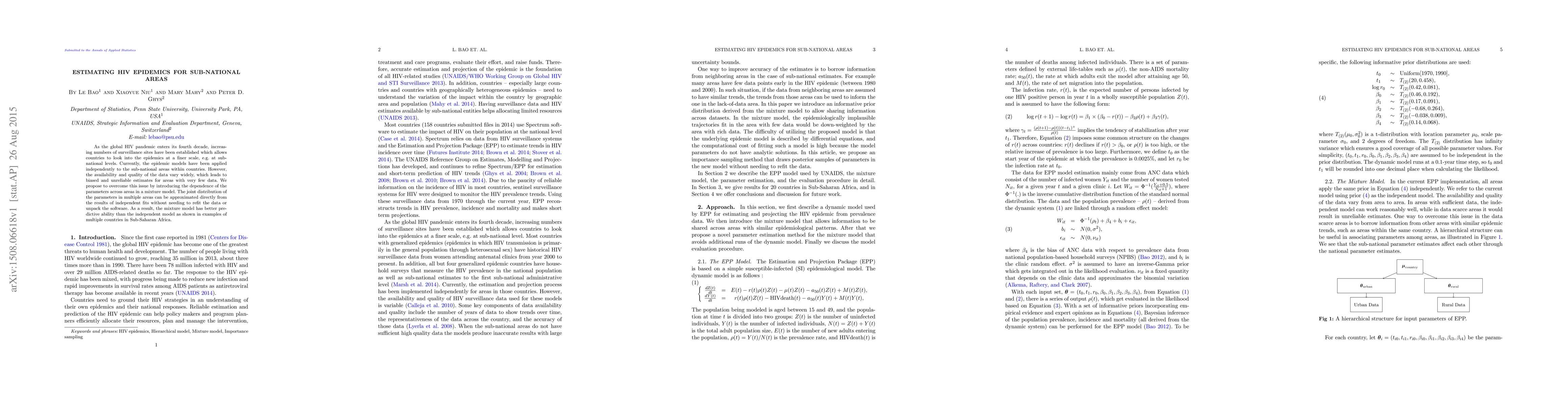 As the global HIV pandemic enters its fourth decade, increasing numbers of surveillance sites have been established which allows countries to look into the epidemics at a finer scale, e.g. at sub-national levels. Currently, the epidemic models have been applied independently to the sub-national areas within countries. However, the availability and quality of the data vary widely, which leads to biased and unreliable estimates for areas with very few data. We propose to overcome this issue by introducing the dependence of the parameters across areas in a mixture model. The joint distribution of the parameters in multiple areas can be approximated directly from the results of independent fits without needing to refit the data or unpack the software. As a result, the mixture model has better predictive ability than the independent model as shown in examples of multiple countries in Sub-Saharan Africa.