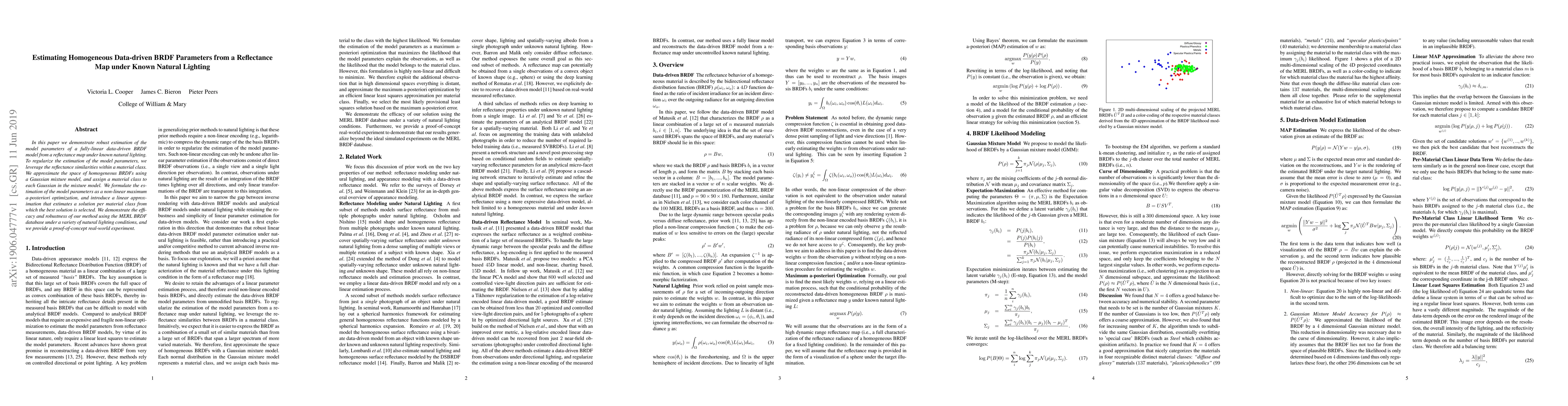 This paper presents a method for robustly estimating parameters of a data-driven BRDF model from a reflectance map under known natural lighting, leveraging material class similarities and a Gaussian mixture model for regularization. The method is demonstrated to be effective using the MERL BRDF database and a real-world experiment.
