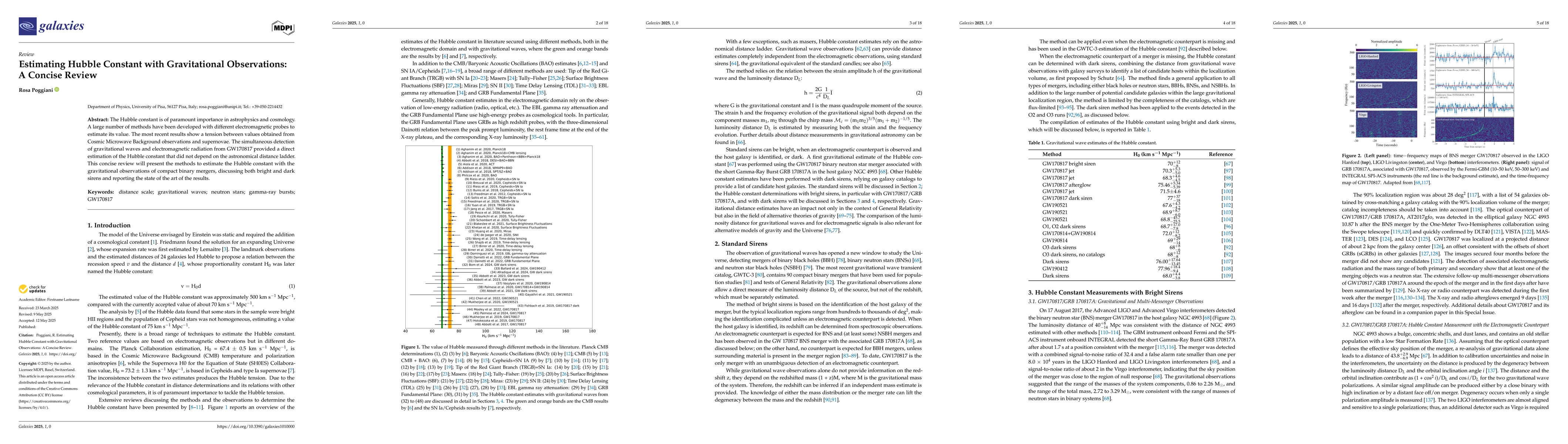 The Hubble constant is of paramount importance in astrophysics and cosmology. A large number of methods have been developed with different electromagnetic probes to estimate its value. The most recent results show a tension between values obtained from Cosmic Microwave Background observations and supernovae. The simultaneous detection of gravitational waves and electromagnetic radiation from GW170817 provided a direct estimation of the Hubble constant that did not depend on the astronomical distance ladder. This concise review will present the methods to estimate the Hubble constant with the gravitational observations of compact binary mergers, discussing both bright and dark sirens and reporting the state of the art of the results.