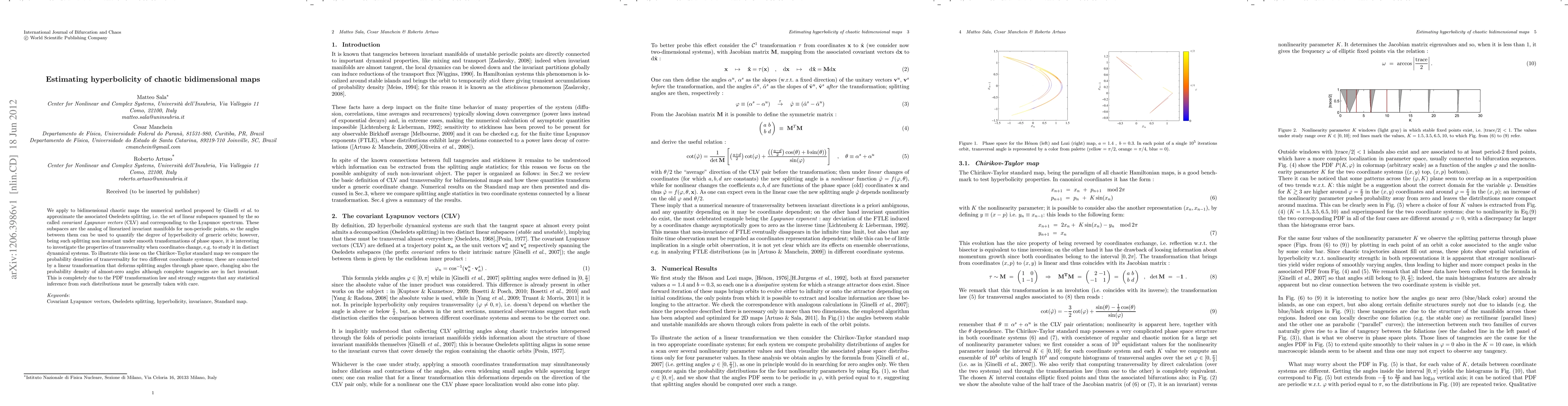 This paper applies a numerical method to bidimensional chaotic maps to estimate hyperbolicity by approximating Oseledets splitting and analyzing covariant Lyapunov vectors. It highlights the variability of transversality angles under coordinate transformations, emphasizing the need for cautious interpretation of statistical inferences from these distributions.