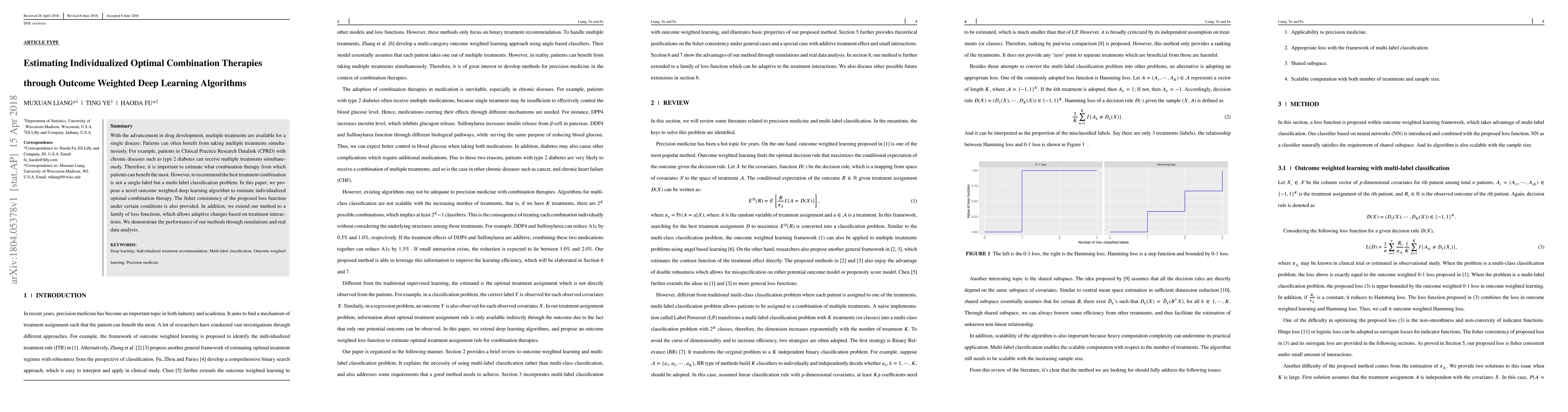 With the advancement in drug development, multiple treatments are available for a single disease. Patients can often benefit from taking multiple treatments simultaneously. For example, patients in Clinical Practice Research Datalink (CPRD) with chronic diseases such as type 2 diabetes can receive multiple treatments simultaneously. Therefore, it is important to estimate what combination therapy from which patients can benefit the most. However, to recommend the best treatment combination is not a single-label but a multi-label classification problem. In this paper, we propose a novel outcome weighted deep learning algorithm to estimate individualized optimal combination therapy. The fisher consistency of the proposed loss function under certain conditions is also provided. In addition, we extend our method to a family of loss functions, which allows adaptive changes based on treatment interactions. We demonstrate the performance of our methods through simulations and real data analysis.