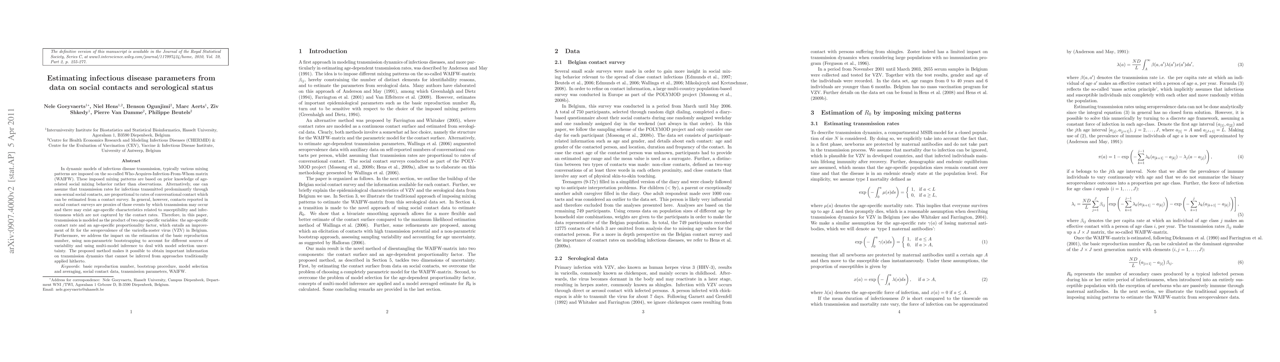This paper proposes a novel method to estimate infectious disease parameters by modeling transmission as the product of age-specific contact rates and a proportionality factor, improving the fit of varicella-zoster virus seroprevalence data. The study also assesses the impact on the basic reproduction number estimation using non-parametric bootstrapping and multi-model inference.