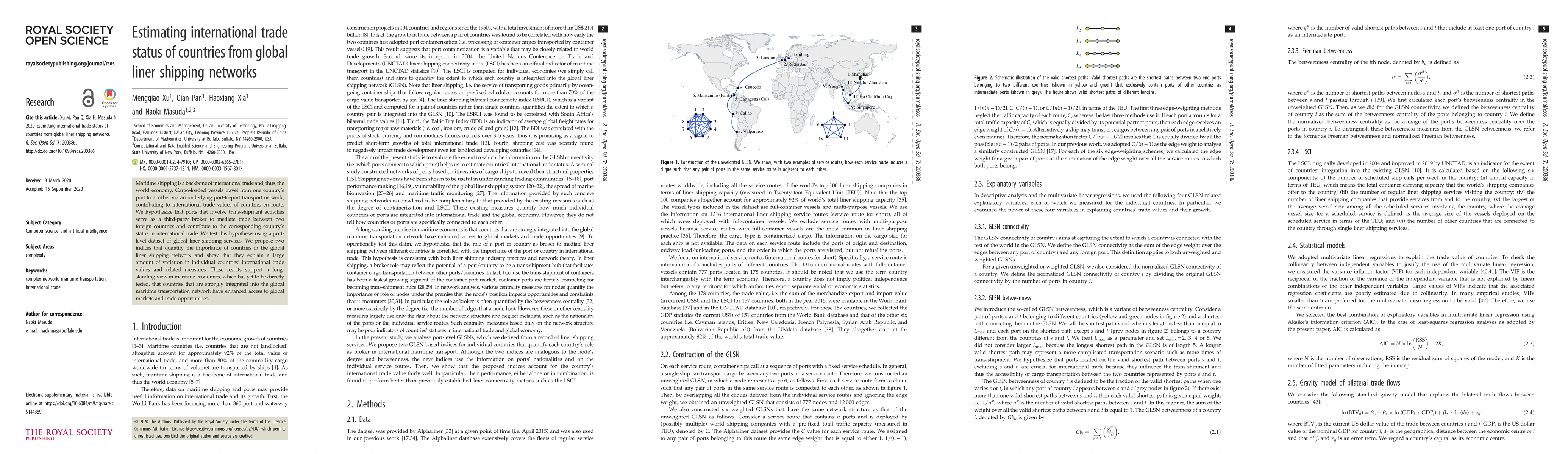 This paper proposes two indices to estimate the international trade status of countries based on their integration into the global liner shipping network, demonstrating that ports involved in trans-shipment activities significantly influence countries' trade values. The findings support the hypothesis that strong maritime network integration enhances countries' access to global markets.