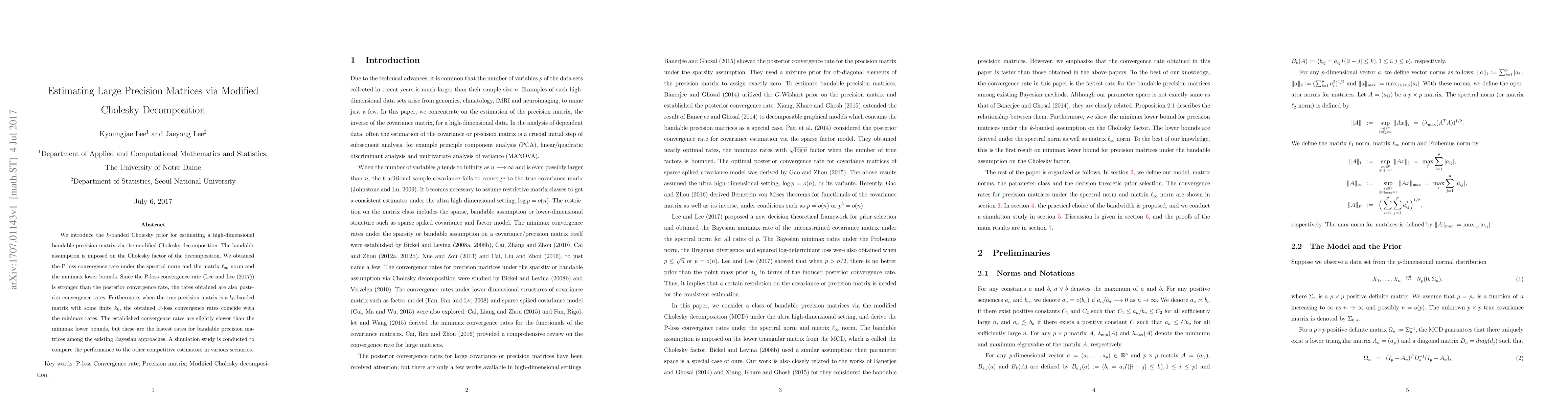 This paper proposes a $k$-banded Cholesky prior for estimating high-dimensional bandable precision matrices using modified Cholesky decomposition, achieving P-loss convergence rates that match minimax lower bounds. The method outperforms existing Bayesian approaches and is validated through simulations.