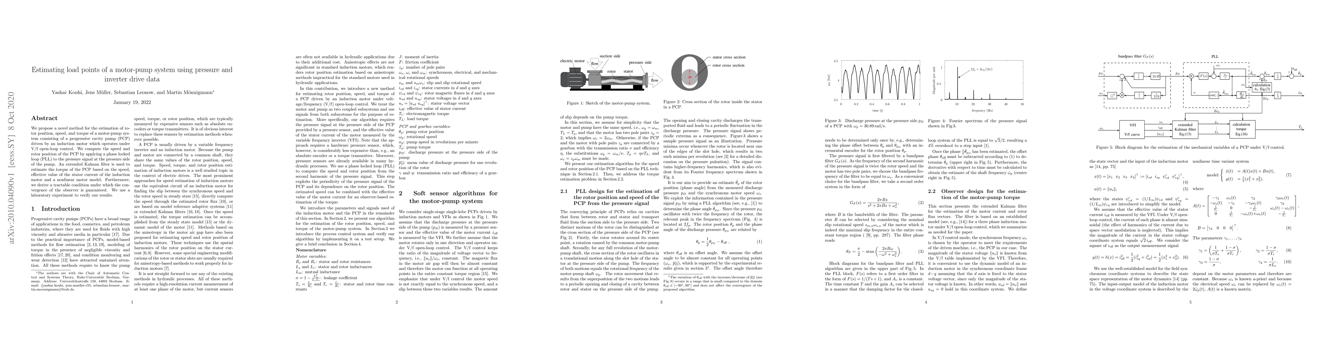 The research proposes a method for estimating rotor position, speed, and torque of a motor-pump system using a phase-locked loop (PLL) on the pressure signal and an extended Kalman filter (EKF) based on the stator current and a nonlinear motor model.