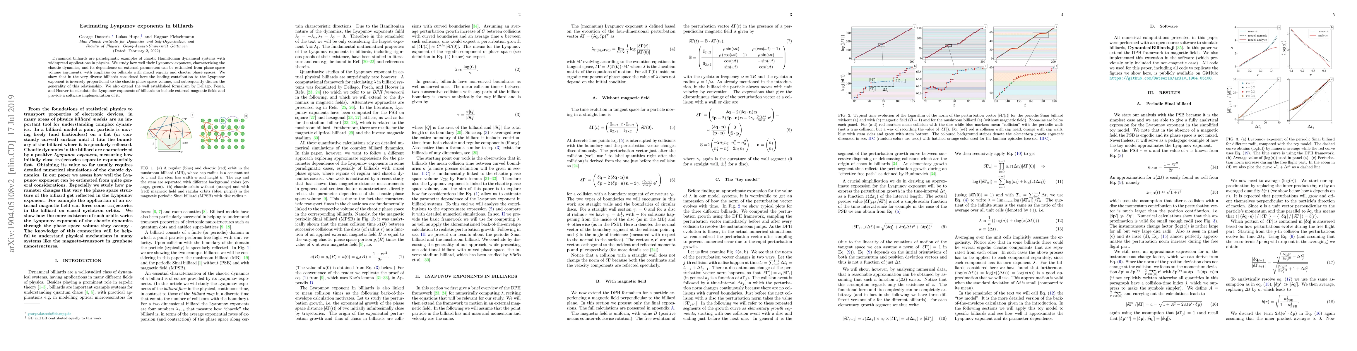 This research shows that in billiard systems, the degree of chaos (Lyapunov exponent) is mainly determined by the size of the chaotic regions in phase space, and this relationship holds across various types of billiards. The study also extends existing methods to include effects of magnetic fields and provides software tools for calculating these chaotic measures.