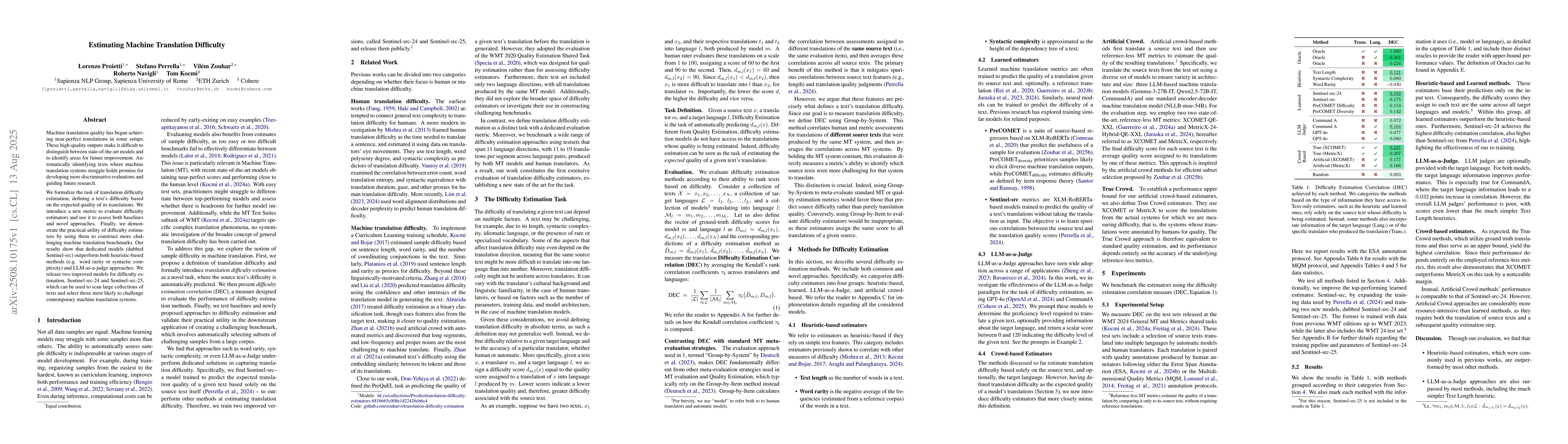 Machine translation quality has began achieving near-perfect translations in some setups. These high-quality outputs make it difficult to distinguish between state-of-the-art models and to identify areas for future improvement. Automatically identifying texts where machine translation systems struggle holds promise for developing more discriminative evaluations and guiding future research. We formalize the task of translation difficulty estimation, defining a text's difficulty based on the expected quality of its translations. We introduce a new metric to evaluate difficulty estimators and use it to assess both baselines and novel approaches. Finally, we demonstrate the practical utility of difficulty estimators by using them to construct more challenging machine translation benchmarks. Our results show that dedicated models (dubbed Sentinel-src) outperform both heuristic-based methods (e.g. word rarity or syntactic complexity) and LLM-as-a-judge approaches. We release two improved models for difficulty estimation, Sentinel-src-24 and Sentinel-src-25, which can be used to scan large collections of texts and select those most likely to challenge contemporary machine translation systems.