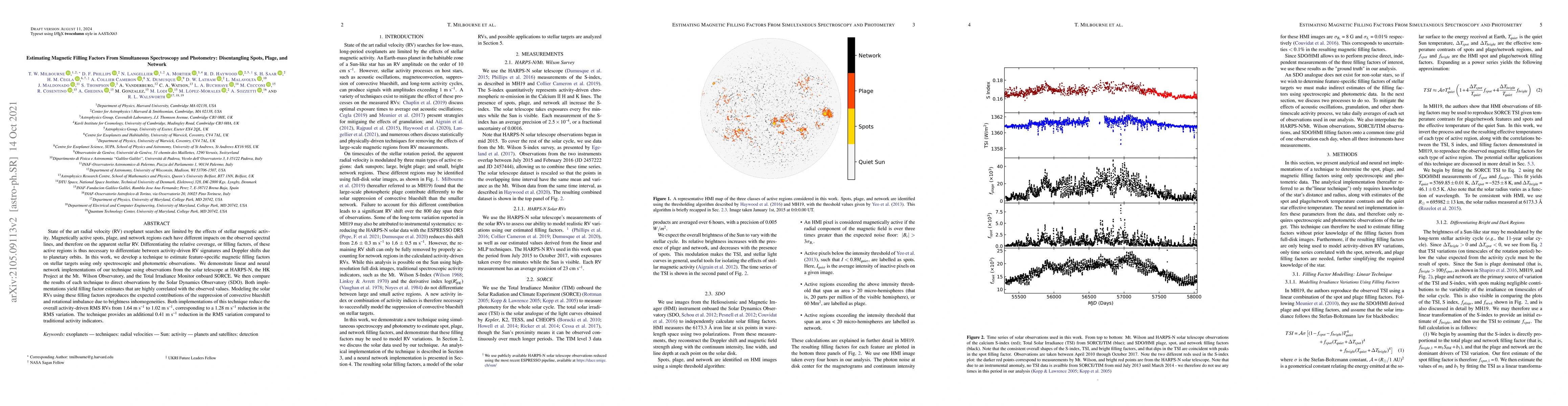 This paper develops a method to estimate magnetic filling factors of stellar spots, plage, and network using spectroscopic and photometric data, aiming to differentiate activity-driven radial velocity (RV) signatures from planetary Doppler shifts. Both linear and neural network implementations show high correlation with observed values from the Solar Dynamics Observatory (SDO), reducing the overall activity-driven RV RMS variation by 1.28 m/s.
