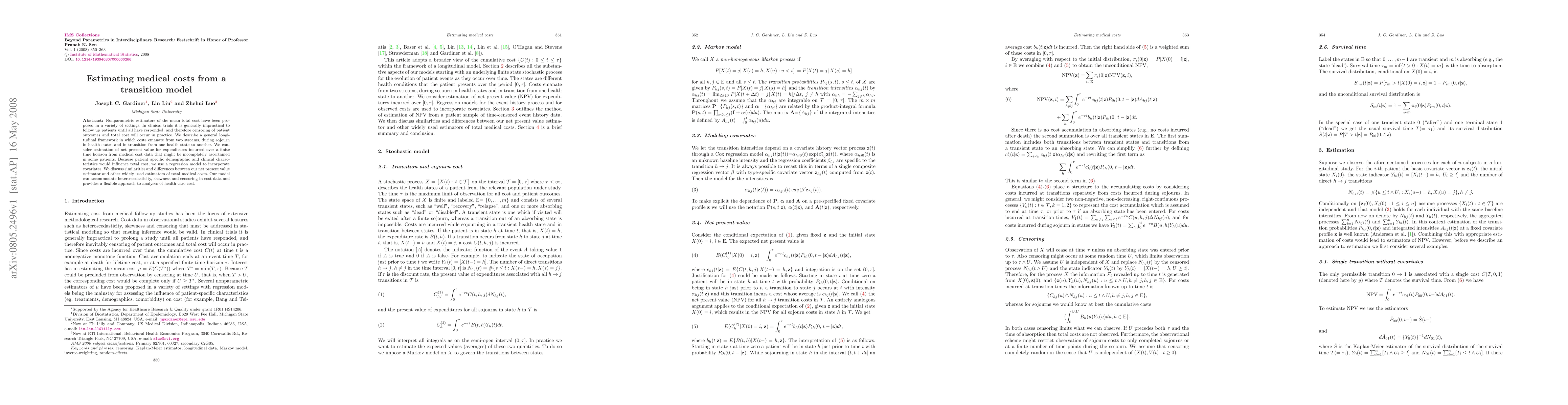 This paper presents a framework for estimating medical costs over time, accounting for costs during health states and in transitions between states. It introduces a regression model incorporating patient characteristics to handle incompletely ascertained data, censoring, and various data distributions, offering a flexible approach to health care cost analysis.