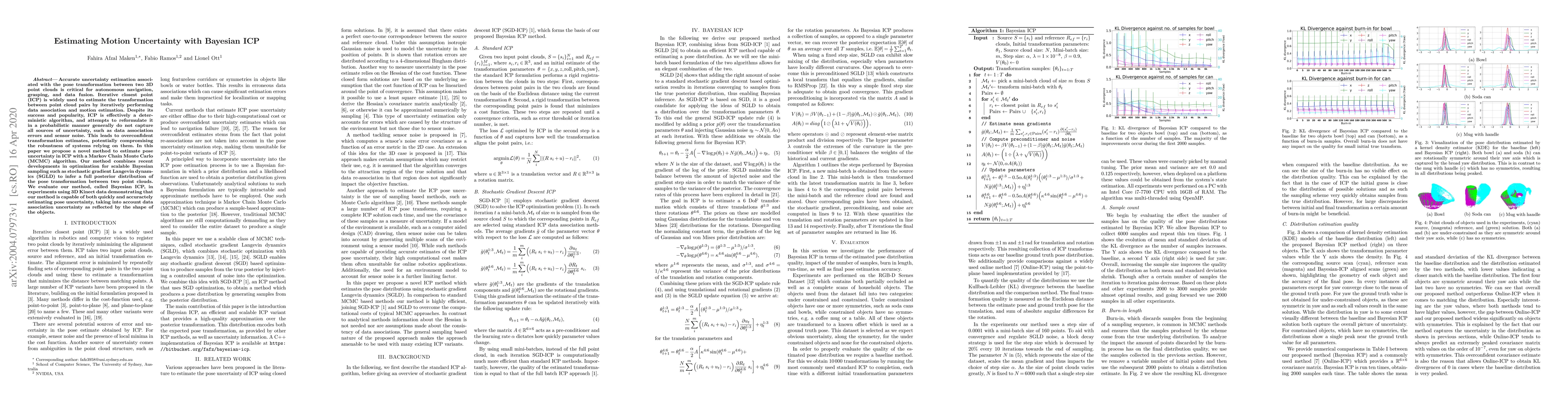 This paper proposes a Bayesian ICP method using MCMC and SGLD to estimate pose uncertainty in 3D point cloud transformations, addressing data association errors and sensor noise for more robust autonomous navigation and data fusion. Experiments with 3D Kinect data show the method's effectiveness in accurately estimating uncertainty.