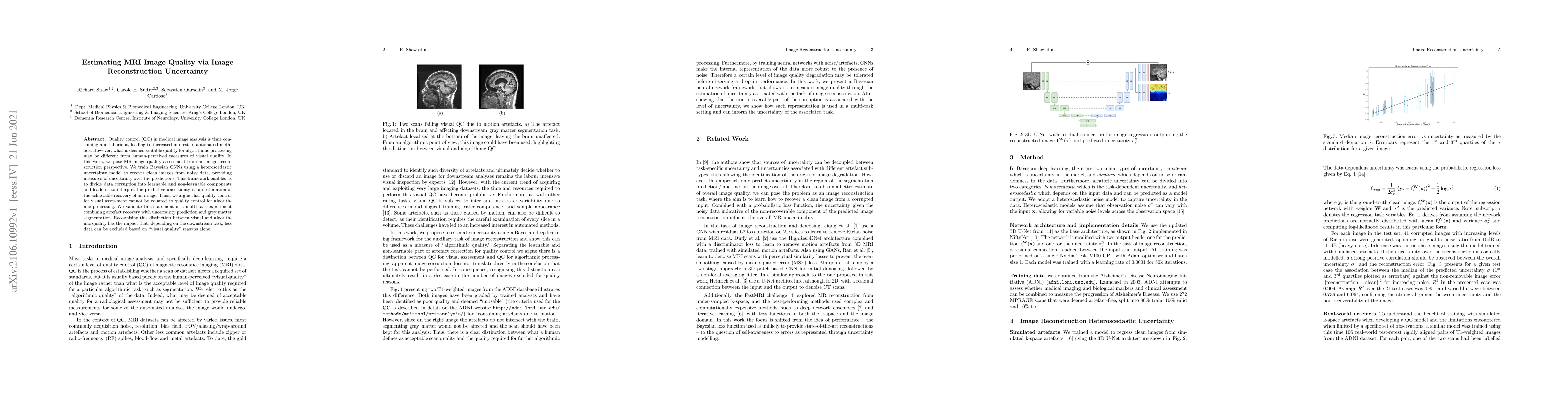 Quality control (QC) in medical image analysis is time-consuming and laborious, leading to increased interest in automated methods. However, what is deemed suitable quality for algorithmic processing may be different from human-perceived measures of visual quality. In this work, we pose MR image quality assessment from an image reconstruction perspective. We train Bayesian CNNs using a heteroscedastic uncertainty model to recover clean images from noisy data, providing measures of uncertainty over the predictions. This framework enables us to divide data corruption into learnable and non-learnable components and leads us to interpret the predictive uncertainty as an estimation of the achievable recovery of an image. Thus, we argue that quality control for visual assessment cannot be equated to quality control for algorithmic processing. We validate this statement in a multi-task experiment combining artefact recovery with uncertainty prediction and grey matter segmentation. Recognising this distinction between visual and algorithmic quality has the impact that, depending on the downstream task, less data can be excluded based on ``visual quality" reasons alone.