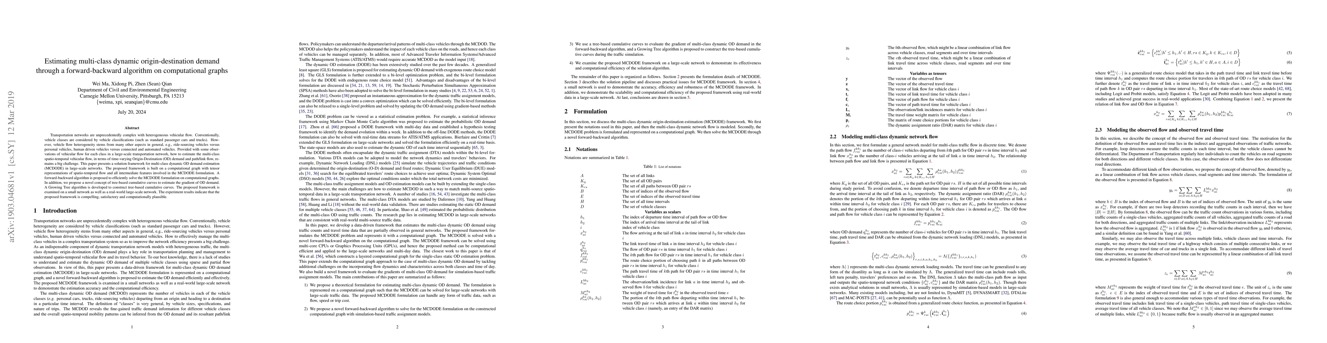 This paper proposes a framework for estimating multi-class dynamic origin-destination demand in large-scale transportation networks using a forward-backward algorithm on computational graphs. The framework employs tree-based cumulative curves and a Growing Tree algorithm to efficiently solve the estimation problem and is validated on both small and large networks.