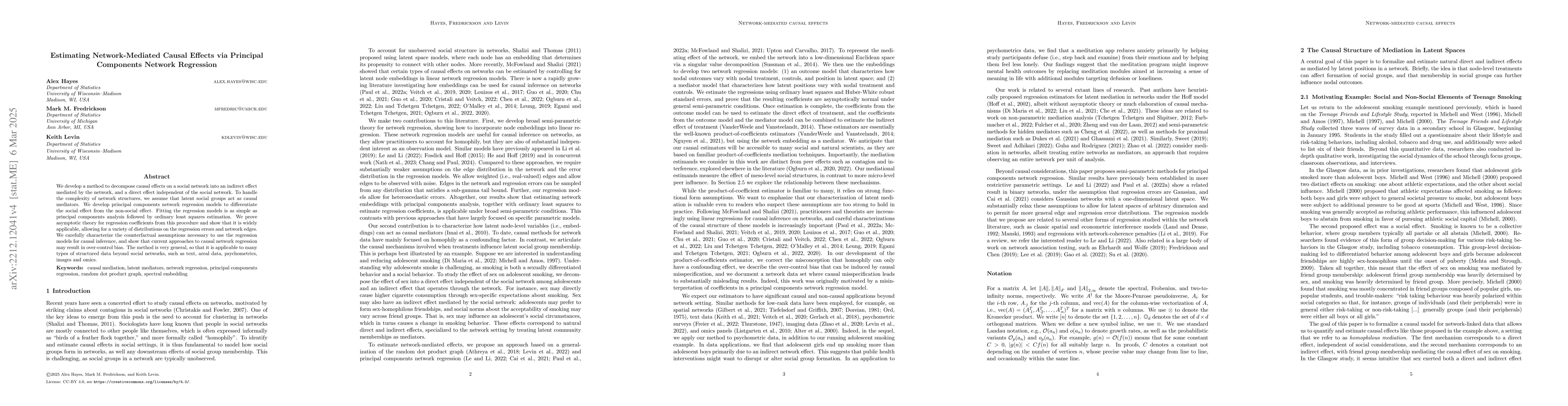 This paper proposes a method for estimating network-mediated causal effects using spectral embeddings. It involves fitting two regression models to latent node positions and demonstrates asymptotic normality of the estimated coefficients under a random dot product graph model.