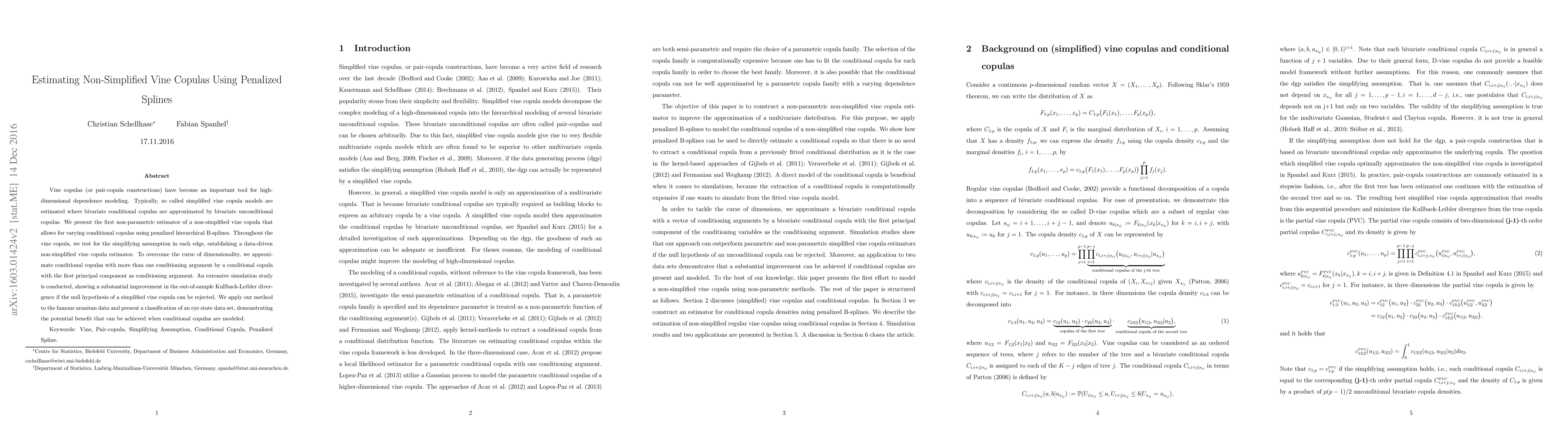 Vine copulas (or pair-copula constructions) have become an important tool for high-dimensional dependence modeling. Typically, so called simplified vine copula models are estimated where bivariate conditional copulas are approximated by bivariate unconditional copulas. We present the first non-parametric estimator of a non-simplified vine copula that allows for varying conditional copulas using penalized hierarchical B-splines. Throughout the vine copula, we test for the simplifying assumption in each edge, establishing a data-driven non-simplified vine copula estimator. To overcome the curse of dimensionality, we approximate conditional copulas with more than one conditioning argument by a conditional copula with the first principal component as conditioning argument. An extensive simulation study is conducted, showing a substantial improvement in the out-of-sample Kullback-Leibler divergence if the null hypothesis of a simplified vine copula can be rejected. We apply our method to the famous uranium data and present a classification of an eye state data set, demonstrating the potential benefit that can be achieved when conditional copulas are modeled.