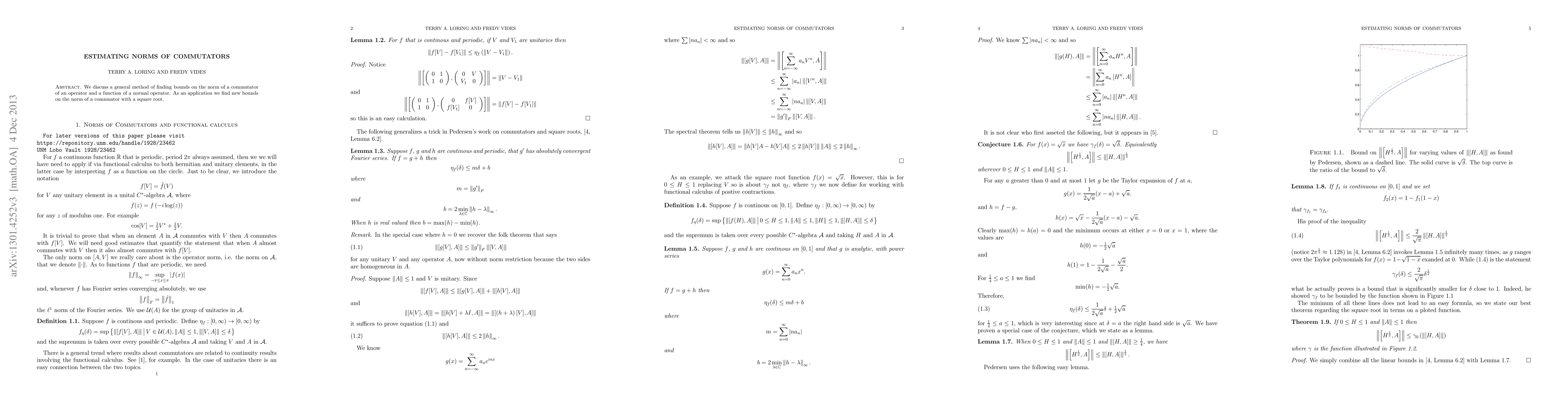 We find estimates on the norms commutators of the form [f(x), y] in terms of the norm of [x, y] assuming that x and y are contractions in a C*-algebra A, with x normal and with spectrum within the domain of f. In particular we discuss [x^2, y] and [x^(1/2), y] for 0 <=, x <=, 1. For larger values of \delta = \|[x; y]\| we can rigorous calculate the best possible upper bound \|[f(x), y]\| for many f. In other cases we have conducted numerical experiments that strongly suggest that we have in many cases found the correct formula for the best upper bound.