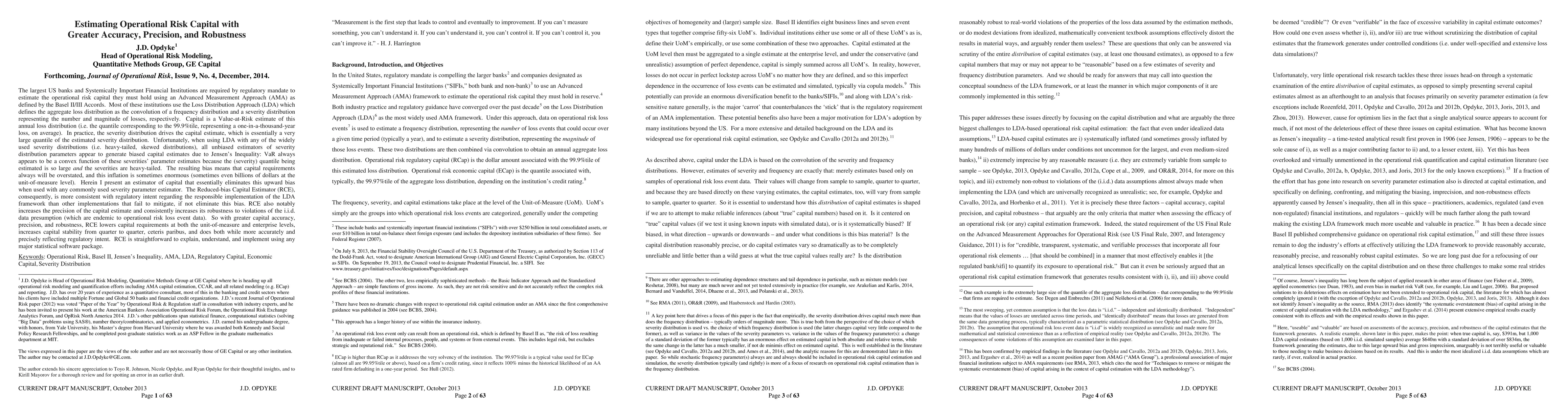 The largest US banks are required by regulatory mandate to estimate the operational risk capital they must hold using an Advanced Measurement Approach (AMA) as defined by the Basel II/III Accords. Most use the Loss Distribution Approach (LDA) which defines the aggregate loss distribution as the convolution of a frequency and a severity distribution representing the number and magnitude of losses, respectively. Estimated capital is a Value-at-Risk (99.9th percentile) estimate of this annual loss distribution. In practice, the severity distribution drives the capital estimate, which is essentially a very high quantile of the estimated severity distribution. Unfortunately, because the relevant severities are heavy-tailed AND the quantiles being estimated are so high, VaR always appears to be a convex function of the severity parameters, causing all widely-used estimators to generate biased capital estimates (apparently) due to Jensen's Inequality. The observed capital inflation is sometimes enormous, even at the unit-of-measure (UoM) level (even billions USD). Herein I present an estimator of capital that essentially eliminates this upward bias. The Reduced-bias Capital Estimator (RCE) is more consistent with the regulatory intent of the LDA framework than implementations that fail to mitigate this bias. RCE also notably increases the precision of the capital estimate and consistently increases its robustness to violations of the i.i.d. data presumption (which are endemic to operational risk loss event data). So with greater capital accuracy, precision, and robustness, RCE lowers capital requirements at both the UoM and enterprise levels, increases capital stability from quarter to quarter, ceteris paribus, and does both while more accurately and precisely reflecting regulatory intent. RCE is straightforward to implement using any major statistical software package.