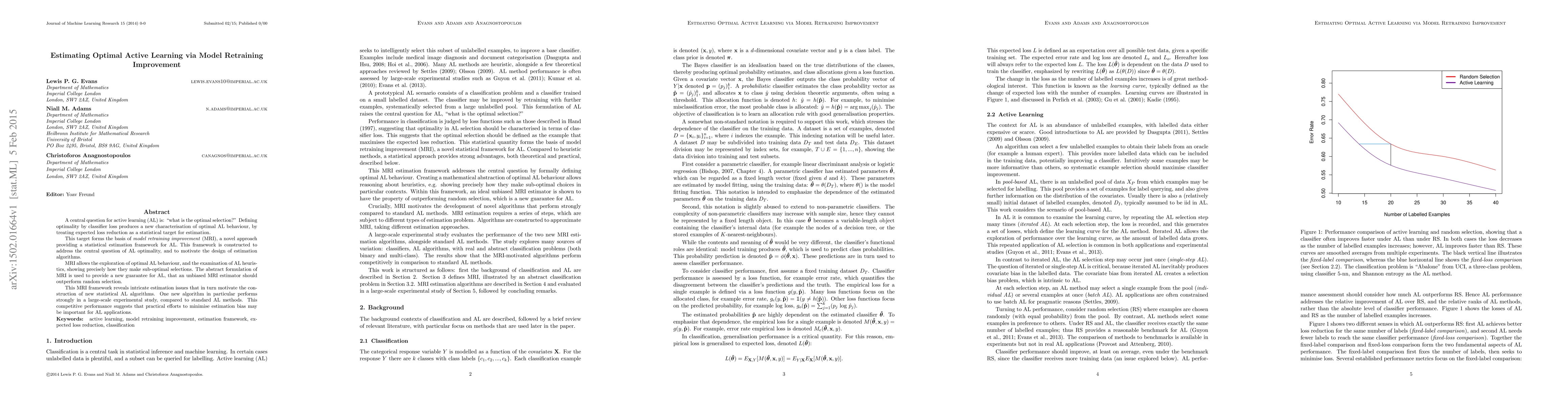 A central question for active learning (AL) is: "what is the optimal selection?" Defining optimality by classifier loss produces a new characterisation of optimal AL behaviour, by treating expected loss reduction as a statistical target for estimation. This target forms the basis of model retraining improvement (MRI), a novel approach providing a statistical estimation framework for AL. This framework is constructed to address the central question of AL optimality, and to motivate the design of estimation algorithms. MRI allows the exploration of optimal AL behaviour, and the examination of AL heuristics, showing precisely how they make sub-optimal selections. The abstract formulation of MRI is used to provide a new guarantee for AL, that an unbiased MRI estimator should outperform random selection. This MRI framework reveals intricate estimation issues that in turn motivate the construction of new statistical AL algorithms. One new algorithm in particular performs strongly in a large-scale experimental study, compared to standard AL methods. This competitive performance suggests that practical efforts to minimise estimation bias may be important for AL applications.