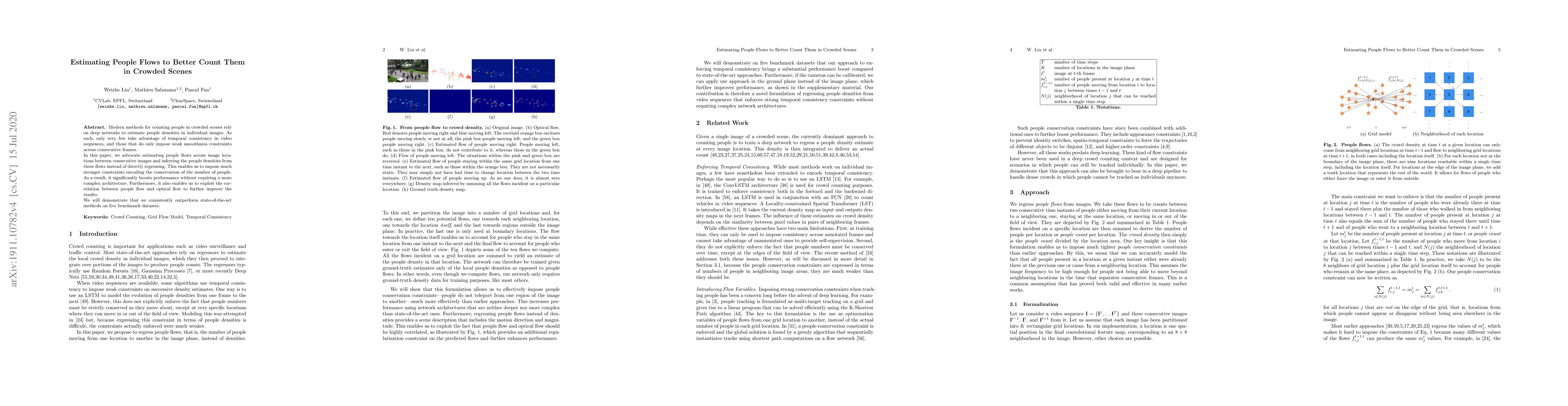 Modern methods for counting people in crowded scenes rely on deep networks to estimate people densities in individual images. As such, only very few take advantage of temporal consistency in video sequences, and those that do only impose weak smoothness constraints across consecutive frames. In this paper, we advocate estimating people flows across image locations between consecutive images and inferring the people densities from these flows instead of directly regressing. This enables us to impose much stronger constraints encoding the conservation of the number of people. As a result, it significantly boosts performance without requiring a more complex architecture. Furthermore, it also enables us to exploit the correlation between people flow and optical flow to further improve the results. We will demonstrate that we consistently outperform state-of-the-art methods on five benchmark datasets.