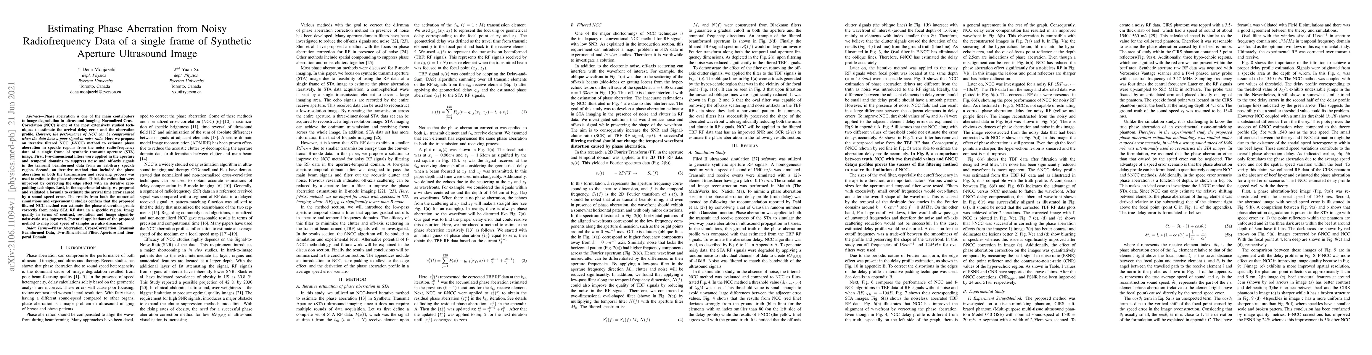 Phase aberration is one of the main contributors to image degradation in ultrasound imaging. Normalized-Cross-Correlation (NCC) is one of the most extensively studied techniques to estimate the arrival delay error and the aberration profile. \textit{However, the performance of NCC can be compromised when the data have a poor signal-to-noise-ratio.} Here we propose an iterative filtered NCC (f-NCC) method to estimate phase aberration in speckle regions from the noisy radio-frequency data of a single frame of synthetic transmit aperture (STA) image. First, two-dimensional filters were applied in the aperture and temporal domains to suppress noise and off-axis signals in the transmit beamformed data from an arbitrary speckle region. Second, an iterative method that included the phase aberration in both the transmission and receiving process was used to estimate the phase aberration. Third, the estimation were improved by correcting the edge effect with an iterative zero-padding technique. Last, in the experimental study, we proposed and validated a formula to estimate the arrival time error caused by a sound speed error. The results from both the numerical simulations and experimental studies confirm that the proposed filtered NCC method can estimate the phase aberration profile correctly from noisy STA RF data in a speckle region. Image quality in terms of contrast, resolution and image signal-to-noise-ratio was improved. Potential applications of the proposed method to map local speed of samples are also discussed.