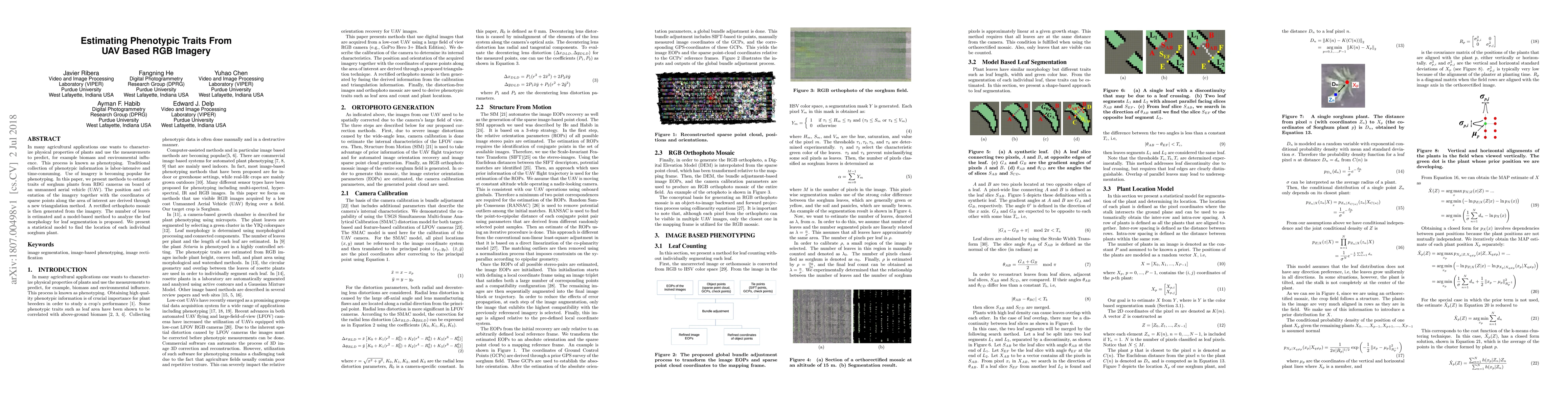 This paper proposes methods to estimate phenotypic traits of sorghum plants using RGB imagery captured by UAVs. It introduces a triangulation method for accurate positioning and a model-based approach for leaf segmentation and plant location determination, aiming to streamline phenotyping in agriculture.