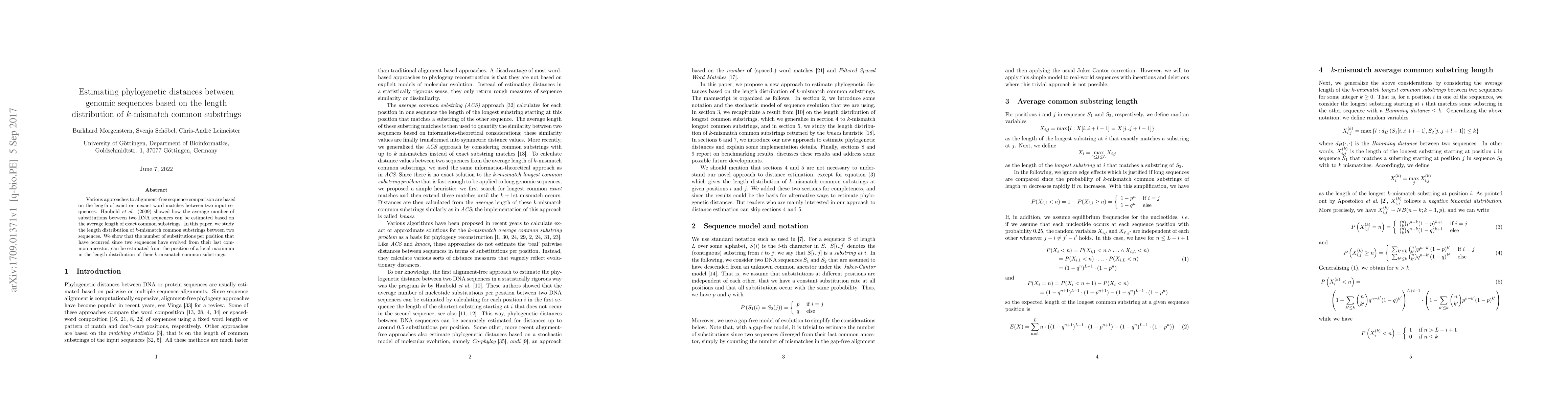 This paper explores alignment-free sequence comparison by analyzing the length distribution of $k$-mismatch common substrings between genomic sequences, demonstrating that the number of substitutions since divergence can be estimated from the local maximum in this distribution.