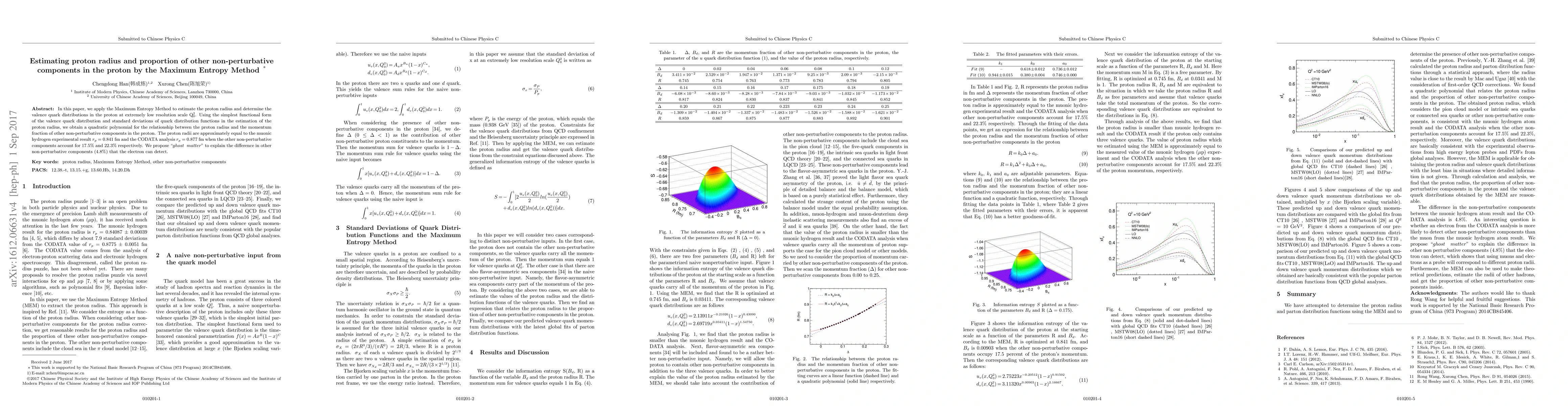 This paper uses the Maximum Entropy Method to estimate the proton radius and explore the valence quark distributions, finding that the proton radius aligns with experimental results when accounting for non-perturbative components. It introduces "ghost matter" to explain the discrepancy in the detected non-perturbative components.