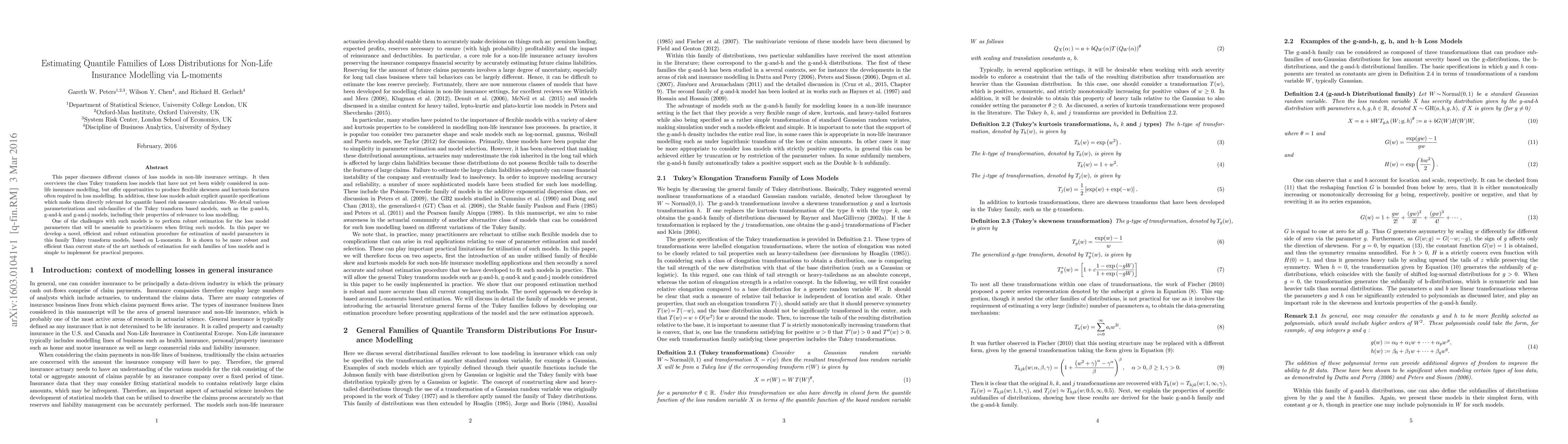 This paper discusses different classes of loss models in non-life insurance settings. It then overviews the class Tukey transform loss models that have not yet been widely considered in non-life insurance modelling, but offer opportunities to produce flexible skewness and kurtosis features often required in loss modelling. In addition, these loss models admit explicit quantile specifications which make them directly relevant for quantile based risk measure calculations. We detail various parameterizations and sub-families of the Tukey transform based models, such as the g-and-h, g-and-k and g-and-j models, including their properties of relevance to loss modelling. One of the challenges with such models is to perform robust estimation for the loss model parameters that will be amenable to practitioners when fitting such models. In this paper we develop a novel, efficient and robust estimation procedure for estimation of model parameters in this family Tukey transform models, based on L-moments. It is shown to be more robust and efficient than current state of the art methods of estimation for such families of loss models and is simple to implement for practical purposes.