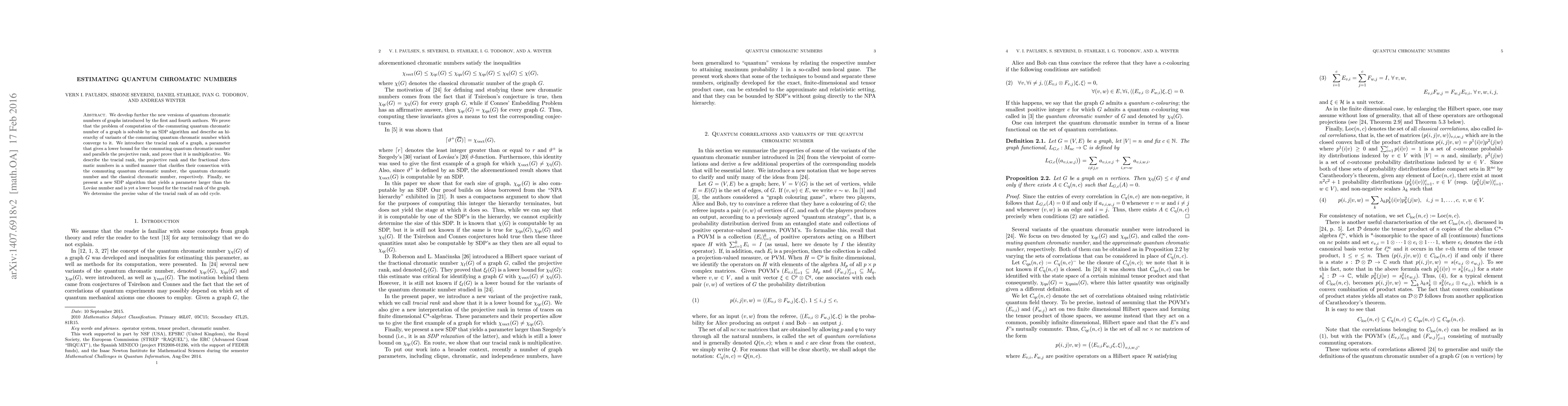 The paper introduces an SDP algorithm for computing the commuting quantum chromatic number and defines the tracial rank, proving its properties and connections to other graph parameters.