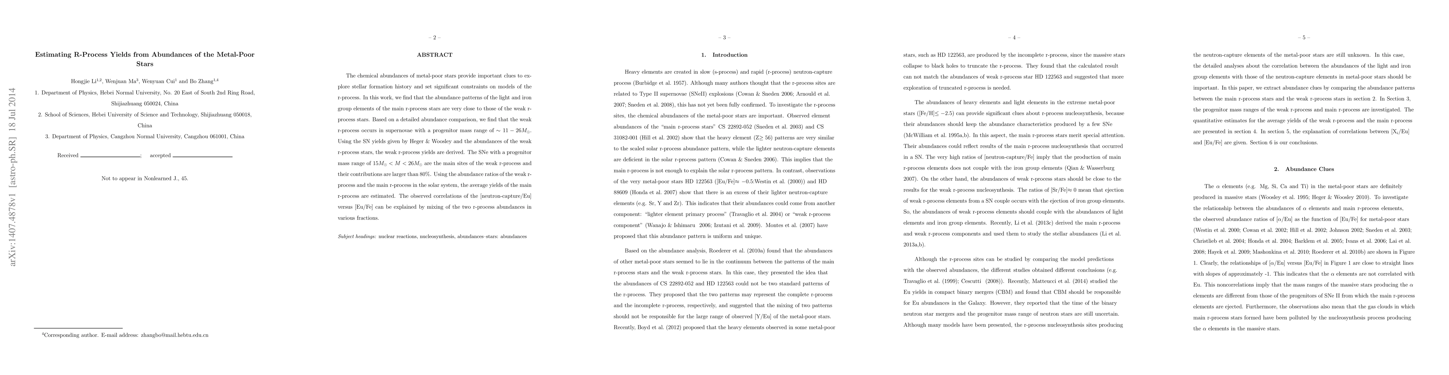 abundances of the weak r-process stars, the weak r-process yields are derived.