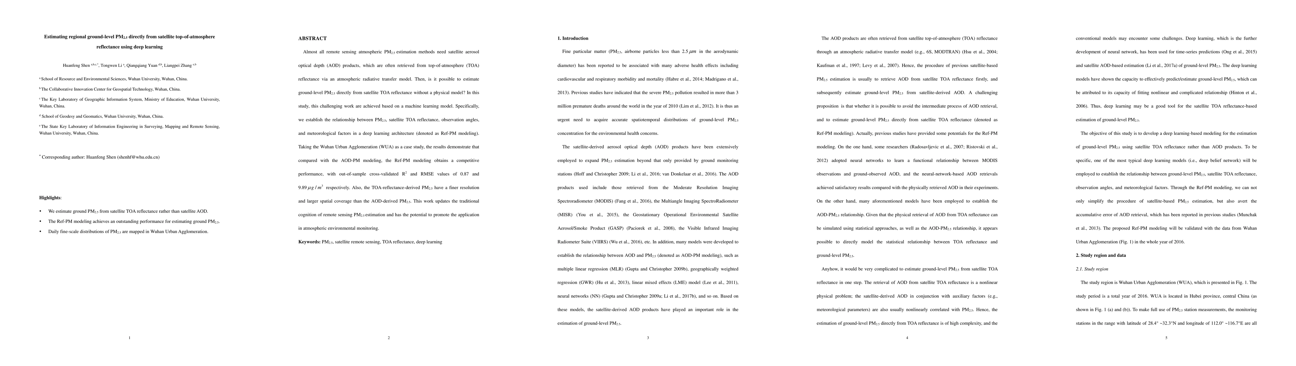 This study proposes a deep learning model to estimate regional ground-level PM2.5 directly from satellite top-of-atmosphere reflectance, bypassing traditional atmospheric radiative transfer models. The results show competitive performance compared to models using aerosol optical depth, with finer resolution and broader spatial coverage.