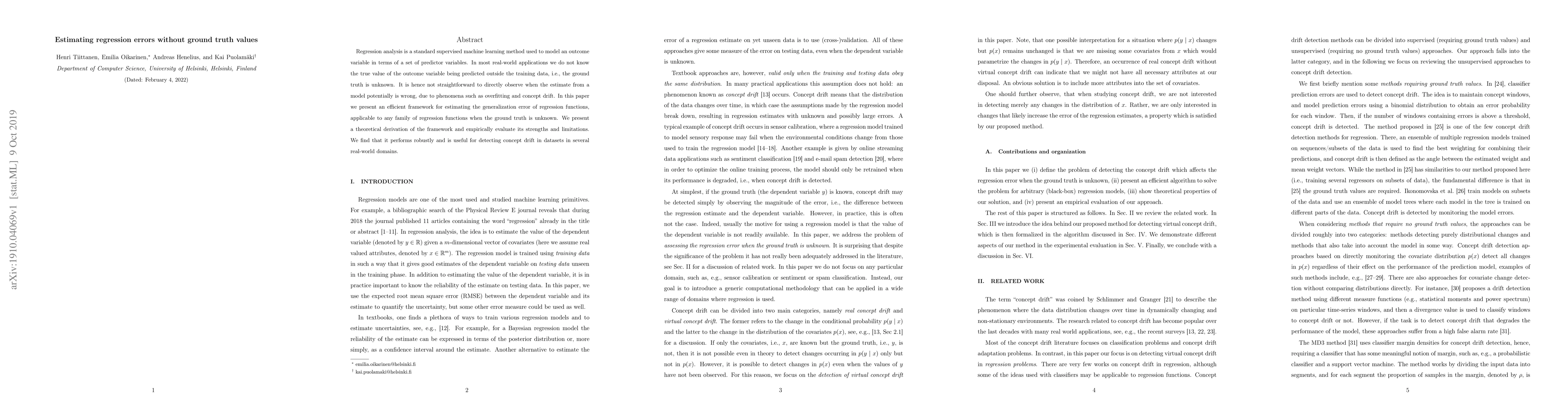 This paper introduces a framework for estimating regression model errors without ground truth values, addressing the challenge of overfitting and concept drift. The proposed method is theoretically derived and empirically shown to robustly detect concept drift across various real-world datasets.