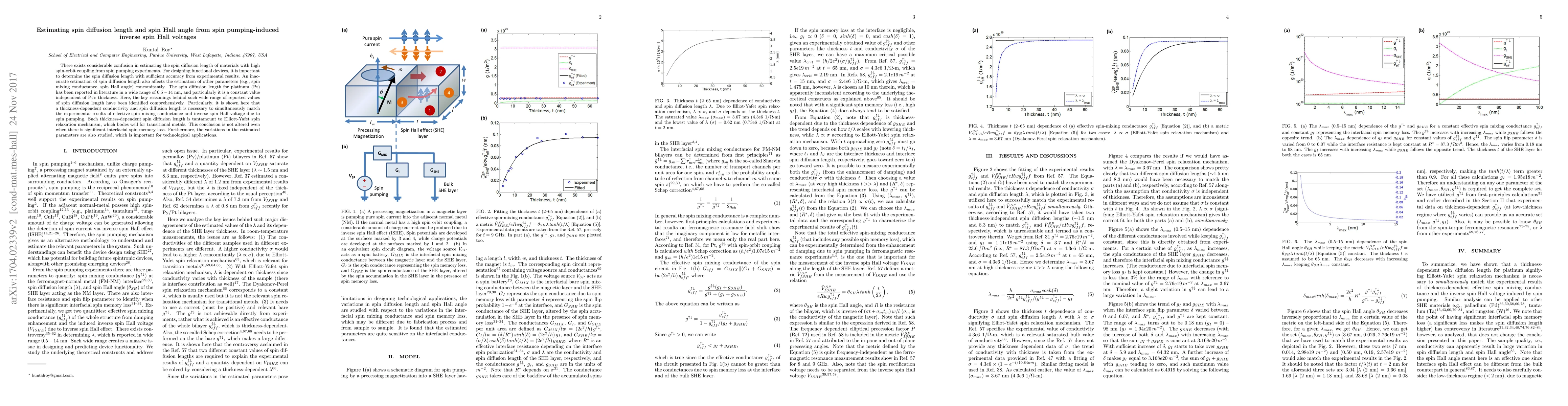 This paper addresses the variability in estimating spin diffusion length in platinum (Pt) from spin pumping experiments, attributing discrepancies to a thickness-dependent spin diffusion length rather than a constant value. It proposes that matching experimental results for spin mixing conductance and inverse spin Hall voltage requires a spin diffusion length that varies with Pt thickness, aligning with the Elliott-Yafet spin relaxation mechanism.