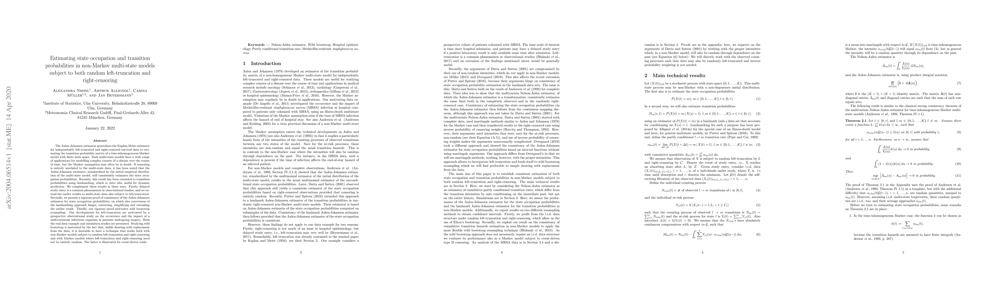 This paper extends the Aalen-Johansen estimator to non-Markov multi-state models subject to left-truncation and right-censoring, providing a rigorous proof of its consistency and introducing wild bootstrap resampling for dynamic prediction. The methodology is demonstrated through a prospective study on multi-resistant infections in surgical patients.