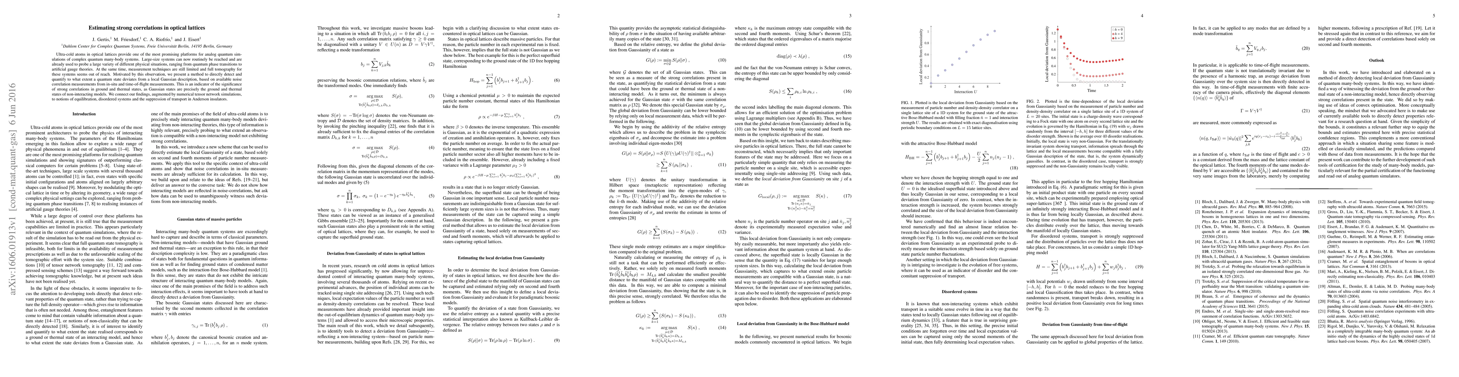 Ultra-cold atoms in optical lattices provide one of the most promising platforms for analog quantum simulations of complex quantum many-body systems. Large-size systems can now routinely be reached and are already used to probe a large variety of different physical situations, ranging from quantum phase transitions to artificial gauge theories. At the same time, measurement techniques are still limited and full tomography for these systems seems out of reach. Motivated by this observation, we present a method to directly detect and quantify to what extent a quantum state deviates from a local Gaussian description, based on available noise correlation measurements from in-situ and time-of-flight measurements. This is an indicator of the significance of strong correlations in ground and thermal states, as Gaussian states are precisely the ground and thermal states of non-interacting models. We connect our findings, augmented by numerical tensor network simulations, to notions of equilibration, disordered systems and the suppression of transport in Anderson insulators.