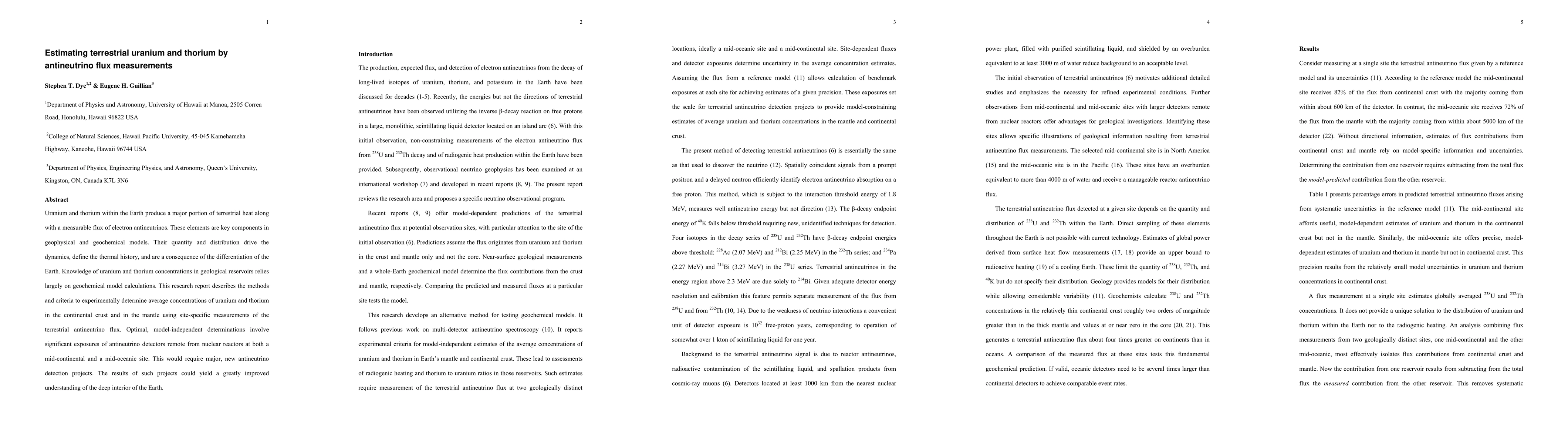 Uranium and thorium within the Earth produce a major portion of terrestrial heat along with a measurable flux of electron antineutrinos. These elements are key components in geophysical and geochemical models. Their quantity and distribution drive the dynamics, define the thermal history, and are a consequence of the differentiation of the Earth. Knowledge of uranium and thorium concentrations in geological reservoirs relies largely on geochemical model calculations. This research report describes the methods and criteria to experimentally determine average concentrations of uranium and thorium in the continental crust and in the mantle using site-specific measurements of the terrestrial antineutrino flux. Optimal, model-independent determinations involve significant exposures of antineutrino detectors remote from nuclear reactors at both a mid-continental and a mid-oceanic site. This would require major, new antineutrino detection projects. The results of such projects could yield a greatly improved understanding of the deep interior of the Earth.