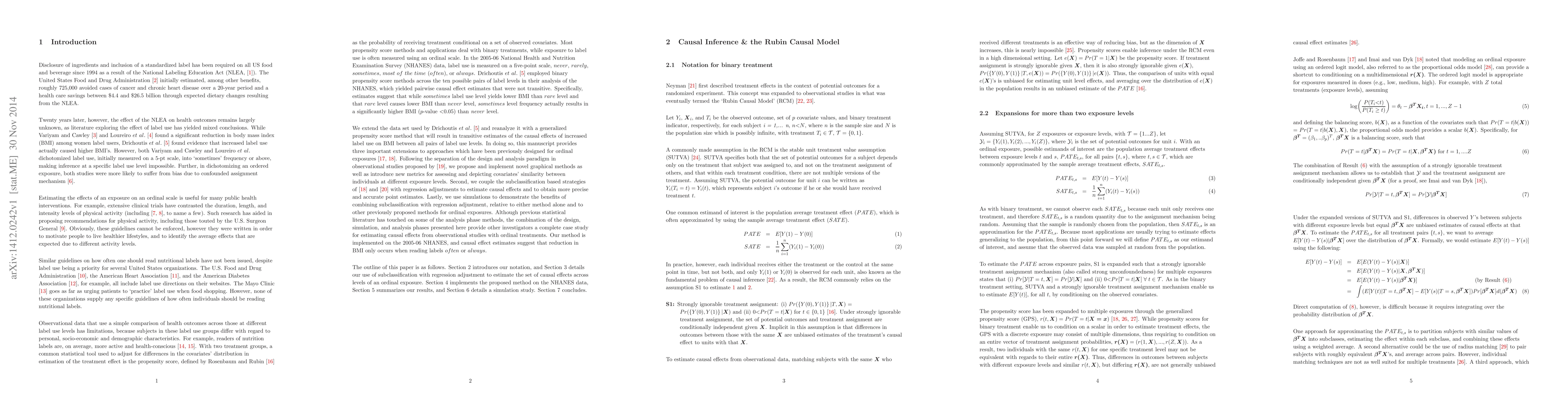 This paper proposes a method combining subclassification with regression adjustment to estimate average treatment effects across ordinal exposure levels, addressing limitations of traditional methods. The method is applied to data from the 2005-06 National Health and Nutrition Examination Survey to assess the impact of nutritional label use on body mass index.