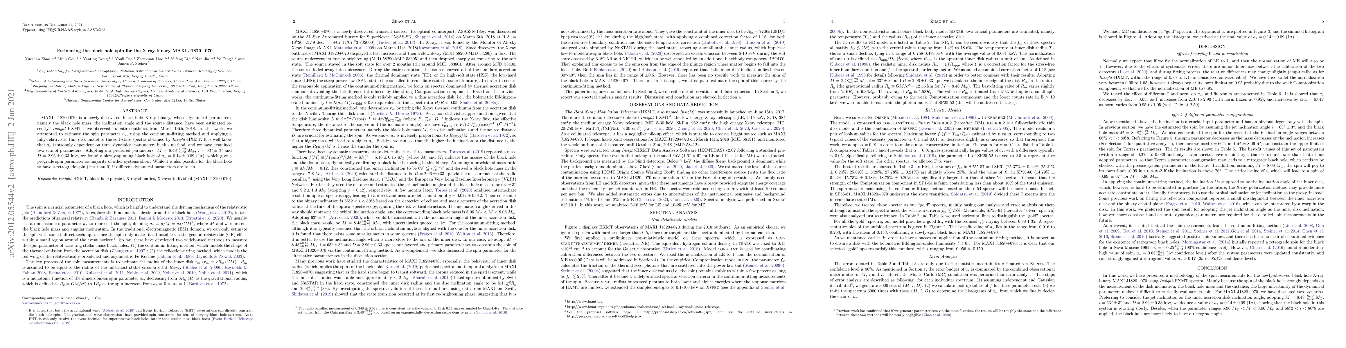 This paper estimates the spin parameter of the black hole in the X-ray binary MAXI J1820+070 using the continuum-fitting method and a relativistic thin disk model. The preferred parameters suggest a slowly-spinning black hole with a prograde spin of $a_*=0.14 \pm 0.09$ ($1\sigma$), though retrograde spin is possible under different assumptions.