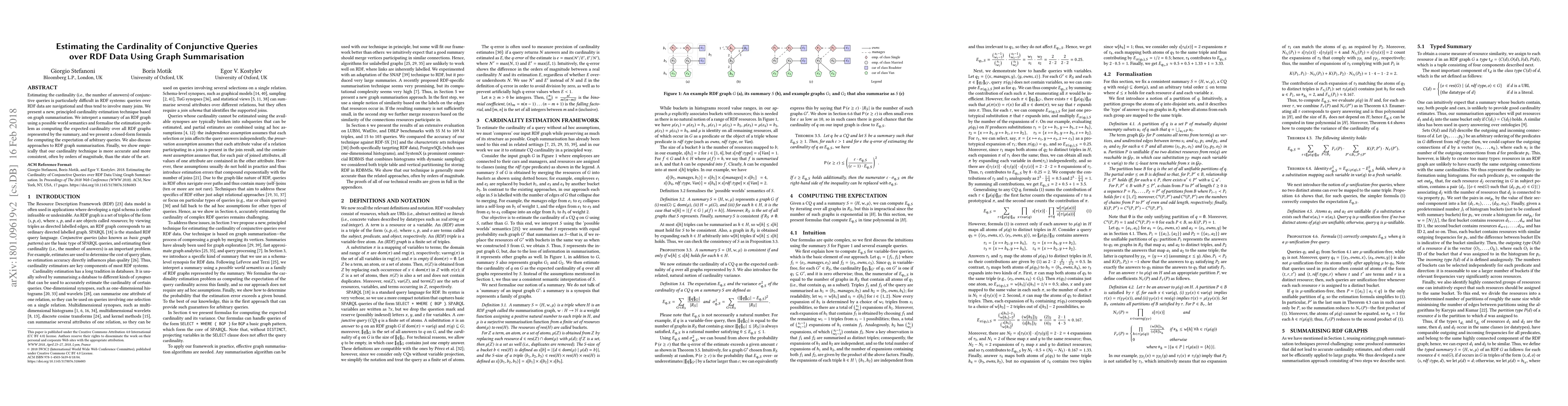 This paper proposes a novel method for estimating the cardinality of conjunctive queries over RDF data using graph summarisation. The technique interprets RDF graph summaries through possible world semantics and provides a closed-form formula for computing query cardinality expectations, demonstrating significant improvements over existing methods.