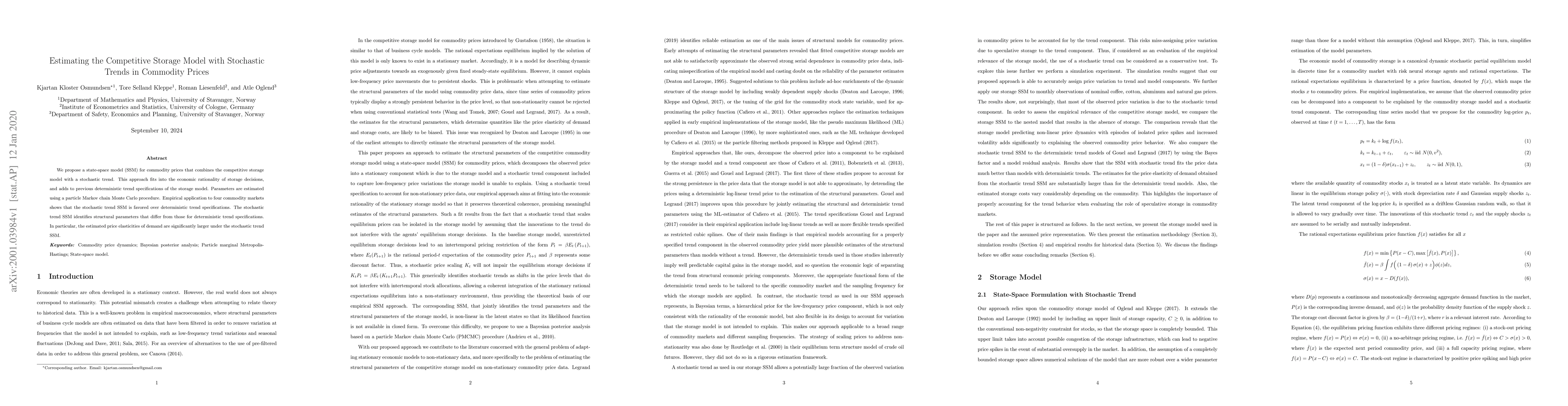 A new state-space model estimates commodity prices with a stochastic trend, favoring it over deterministic models in four markets, which also identifies larger price elasticities of demand.