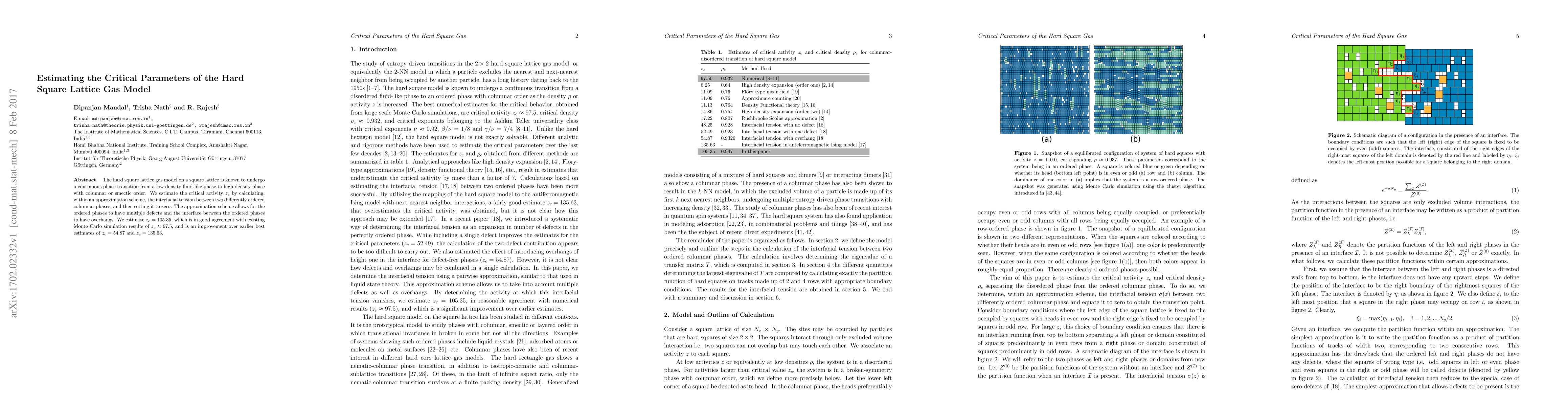 This paper estimates the critical activity $z_c$ for the hard square lattice gas model, determining it to be $z_c=105.35$ through an approximation scheme that considers interfacial tension and defects. The result aligns well with Monte Carlo simulations and surpasses previous estimates.
