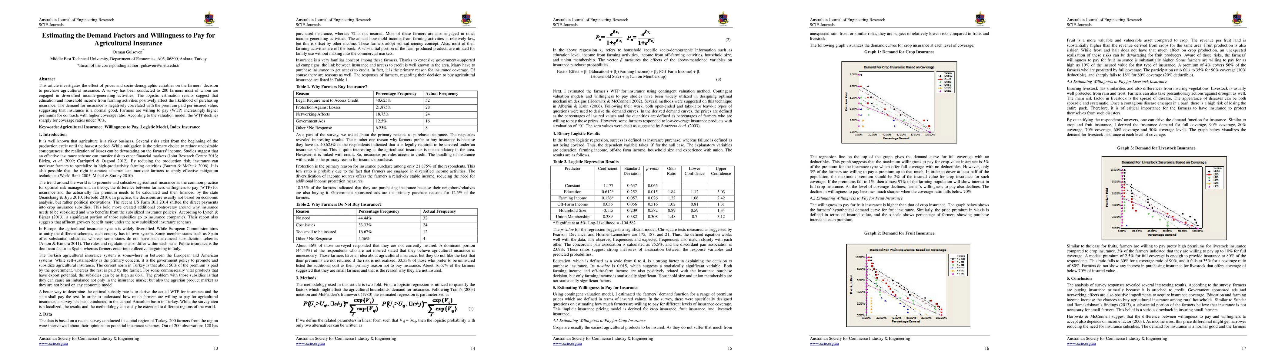 This study examines how prices and socio-demographic factors influence farmers' decisions to buy agricultural insurance, finding that education and income from farming increase insurance purchase likelihood. Premiums inversely affect demand, indicating insurance as a normal good, with farmers willing to pay more for higher coverage ratios, though willingness drops significantly below 70% coverage.