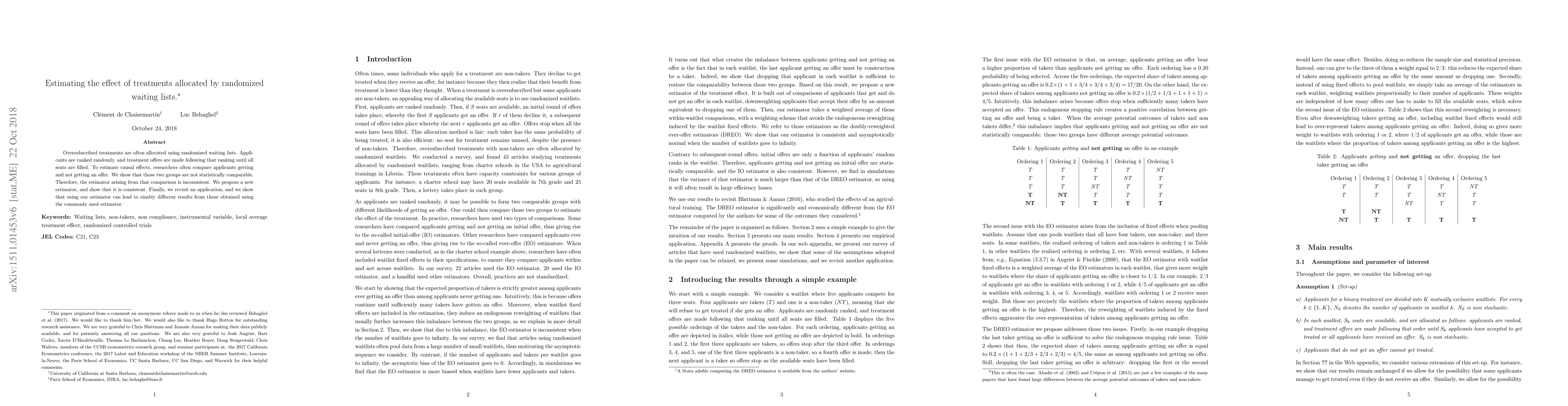 This paper demonstrates that traditional methods for estimating treatment effects from randomized waiting lists are inconsistent due to non-comparability between offered and non-offered applicants. It proposes a new consistent estimator and shows its superior performance in a reanalysis of an application.