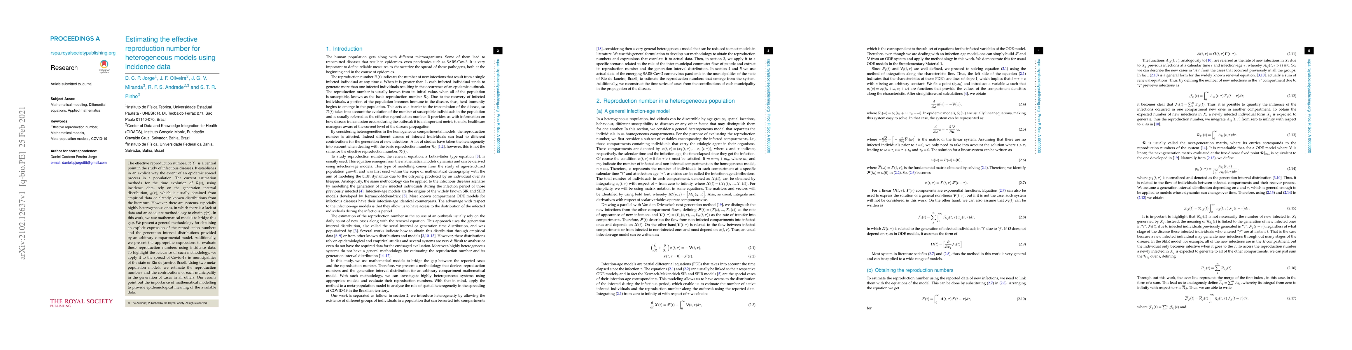This paper develops a methodology to estimate the effective reproduction number, R(t), for heterogeneous infectious disease models using incidence data, addressing the lack of empirical generation interval data. It applies this approach to Covid-19 in Rio de Janeiro municipalities, demonstrating the importance of mathematical models in interpreting epidemiological data.